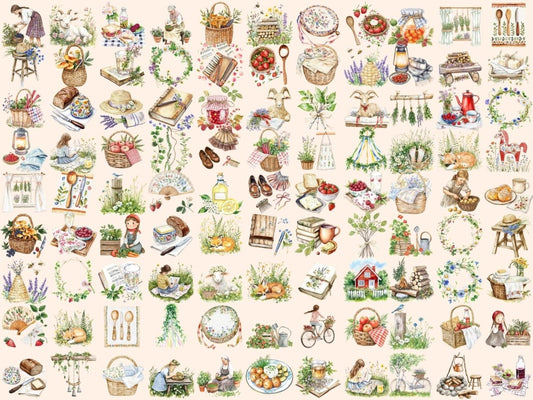 • Scandinavian Summer Watercolor Clipart cozy summer png folk art summer hygge summer clipart - WondersArtist Skandinavisk sommer akvarel clipart