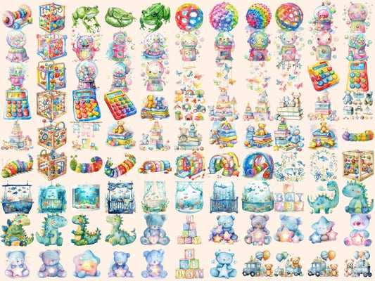• Baby Toys Watercolor Clipart baby clipart - Wonders Artist Babyspielzeug Aquarell Clipart