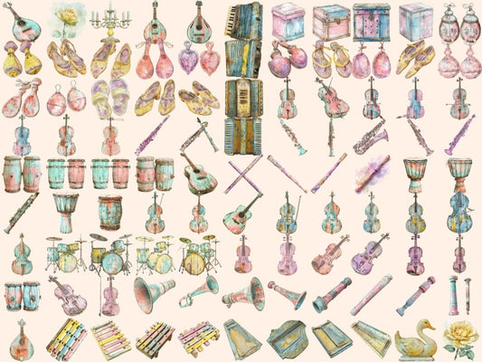 • Musical Instruments Watercolor Clipart instrument digital - Wonders Artist Musikinstrumente Aquarell Clipart