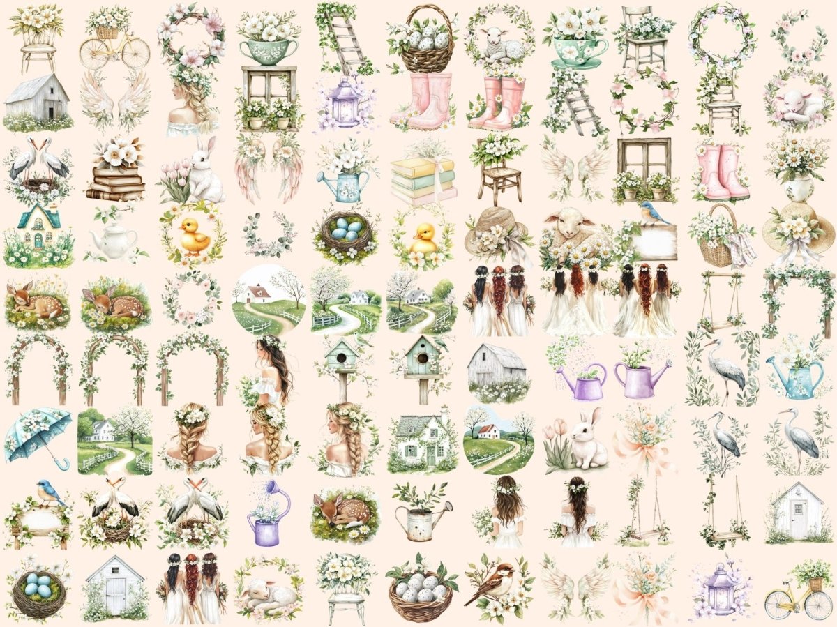 Cottagecore Spring Aquarell Clipart