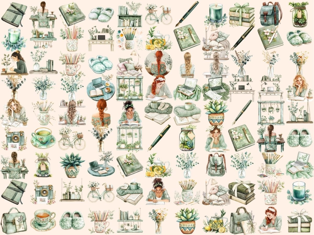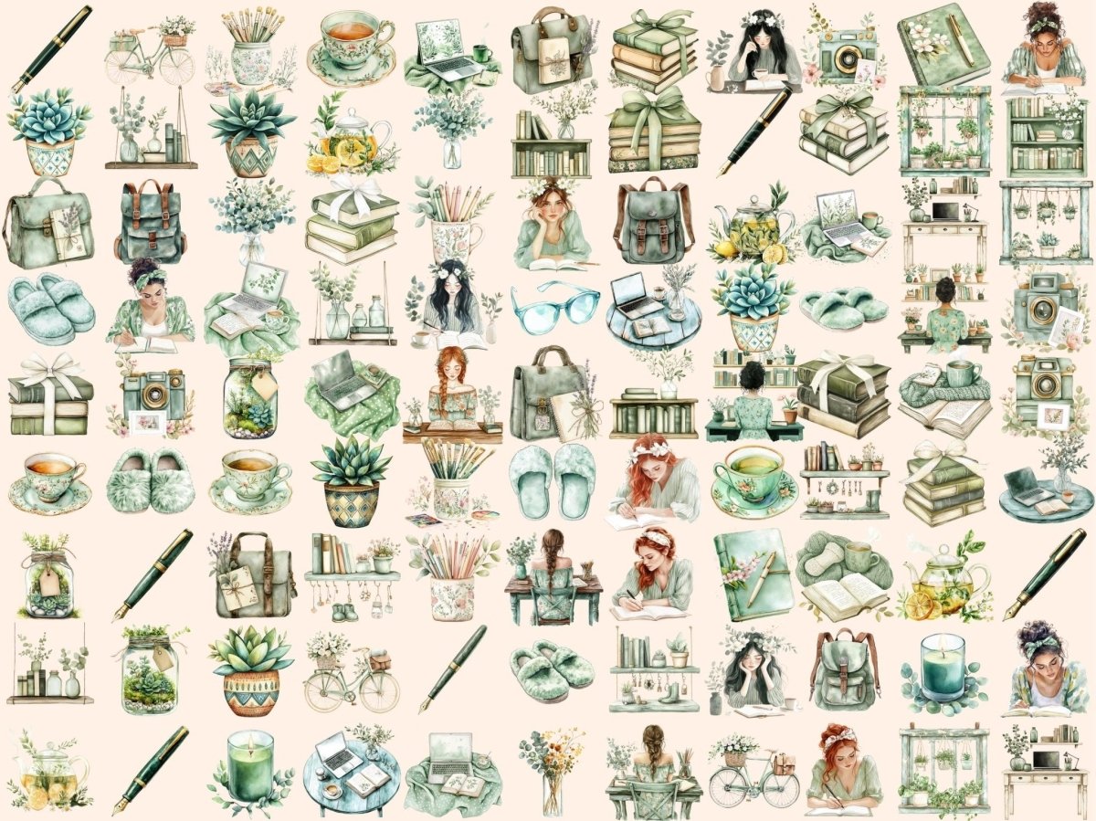 Grüne und weiße Weihnachtsschmuck Aquarell Clipart