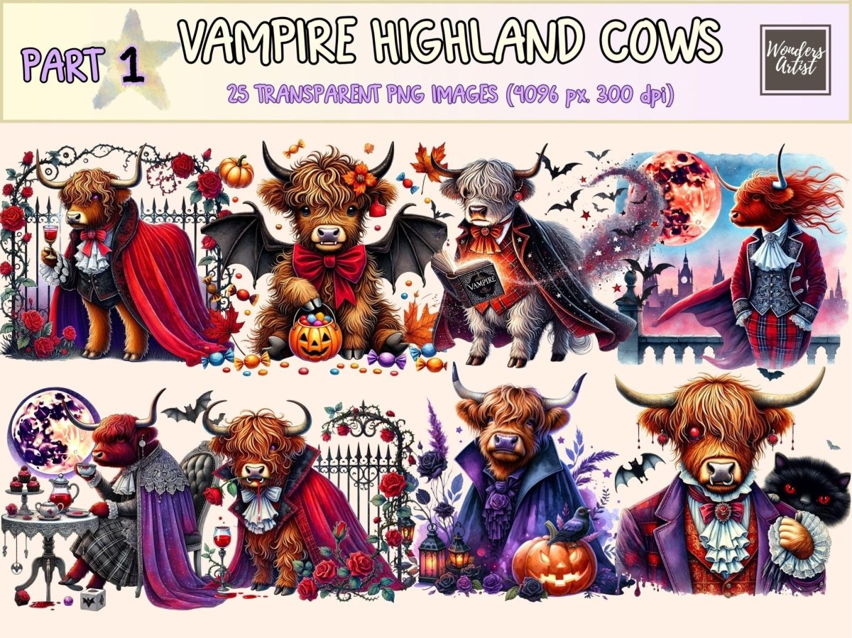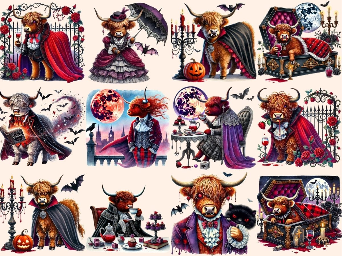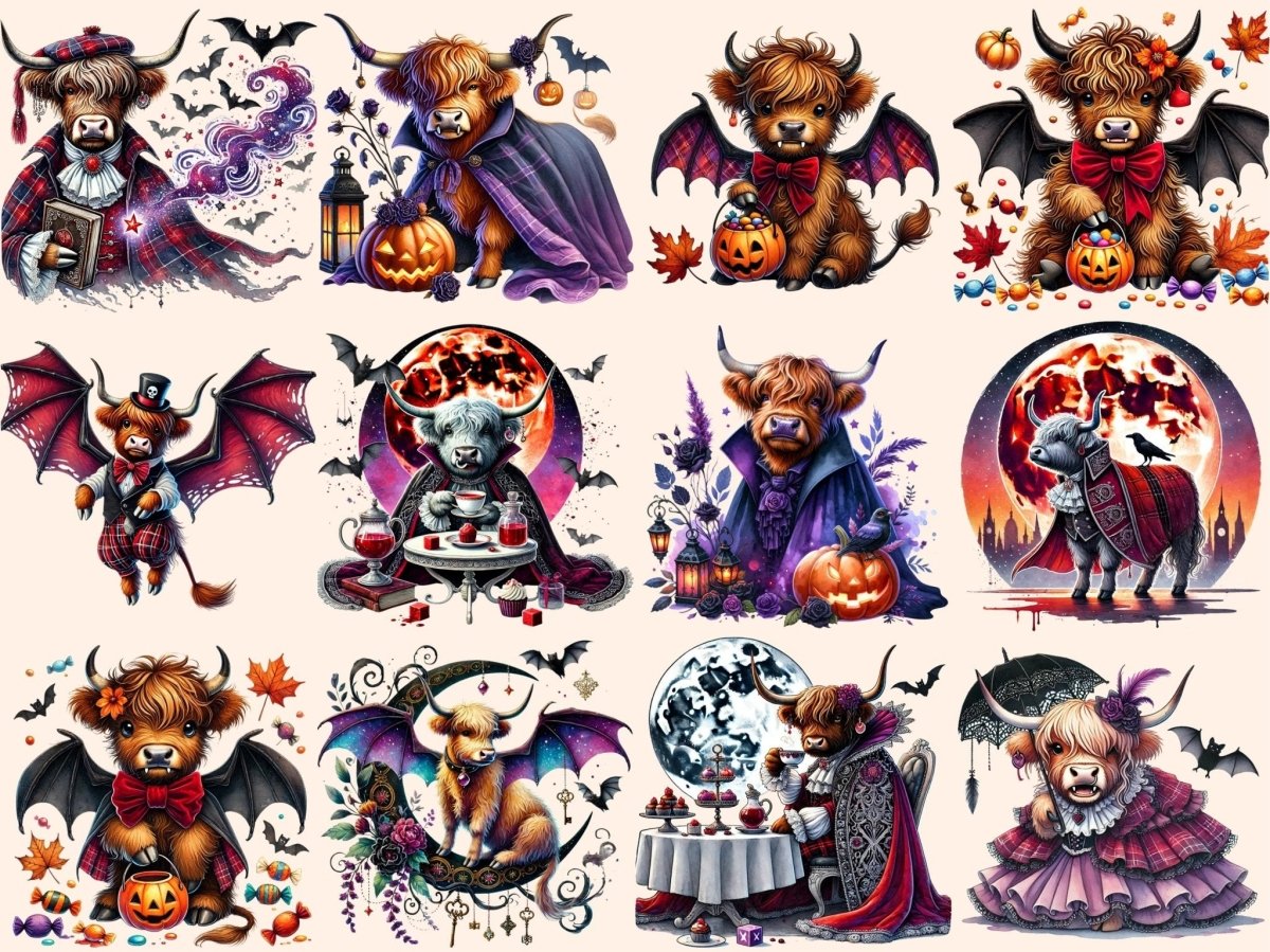 Halloween Highland Cows (P2) Clipart