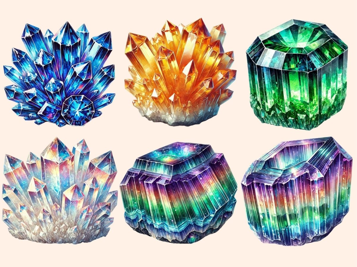 Clipart de Cristales Espaciales en Acuarela