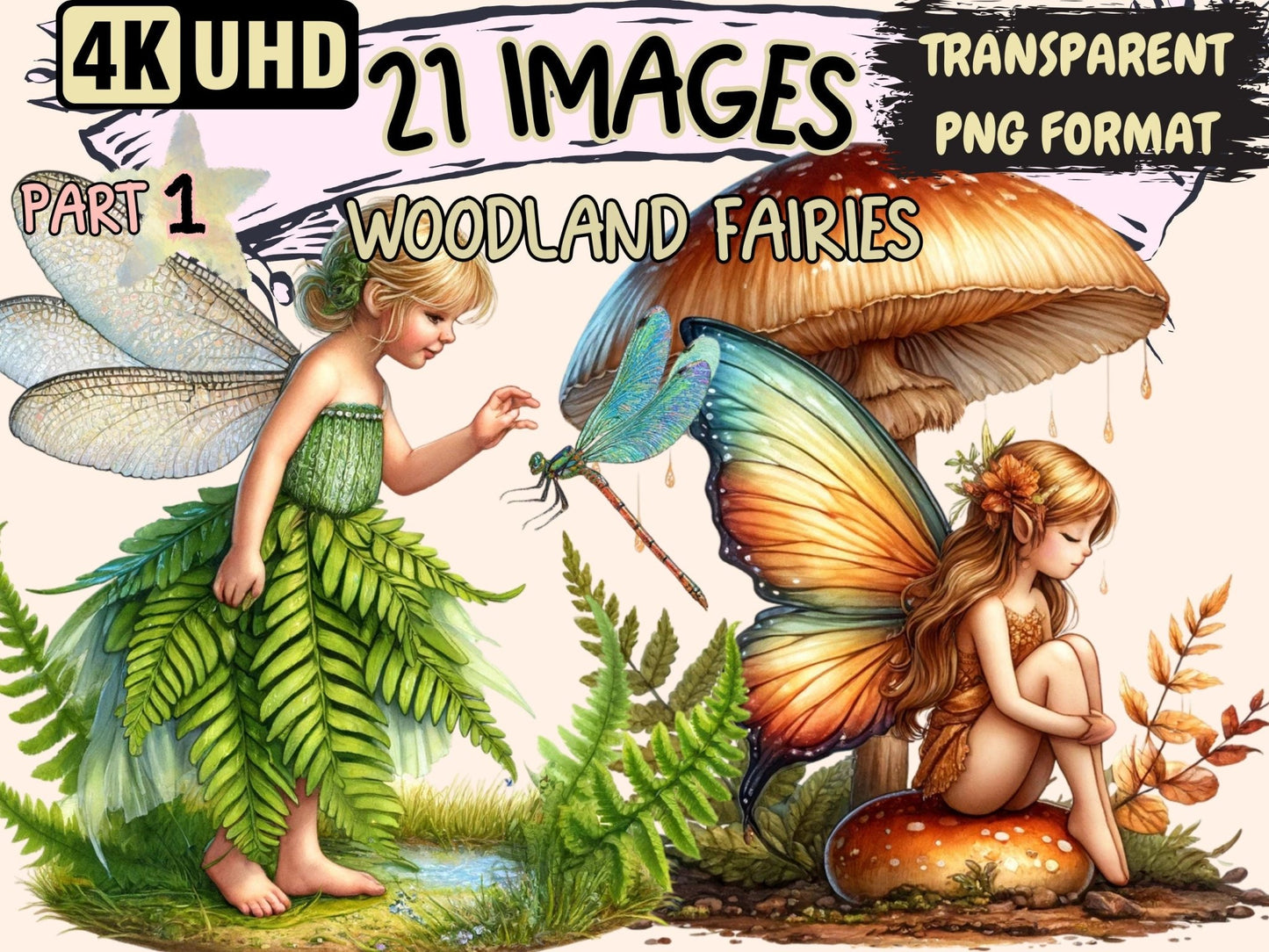 Hadas del bosque clipart de acuarela
