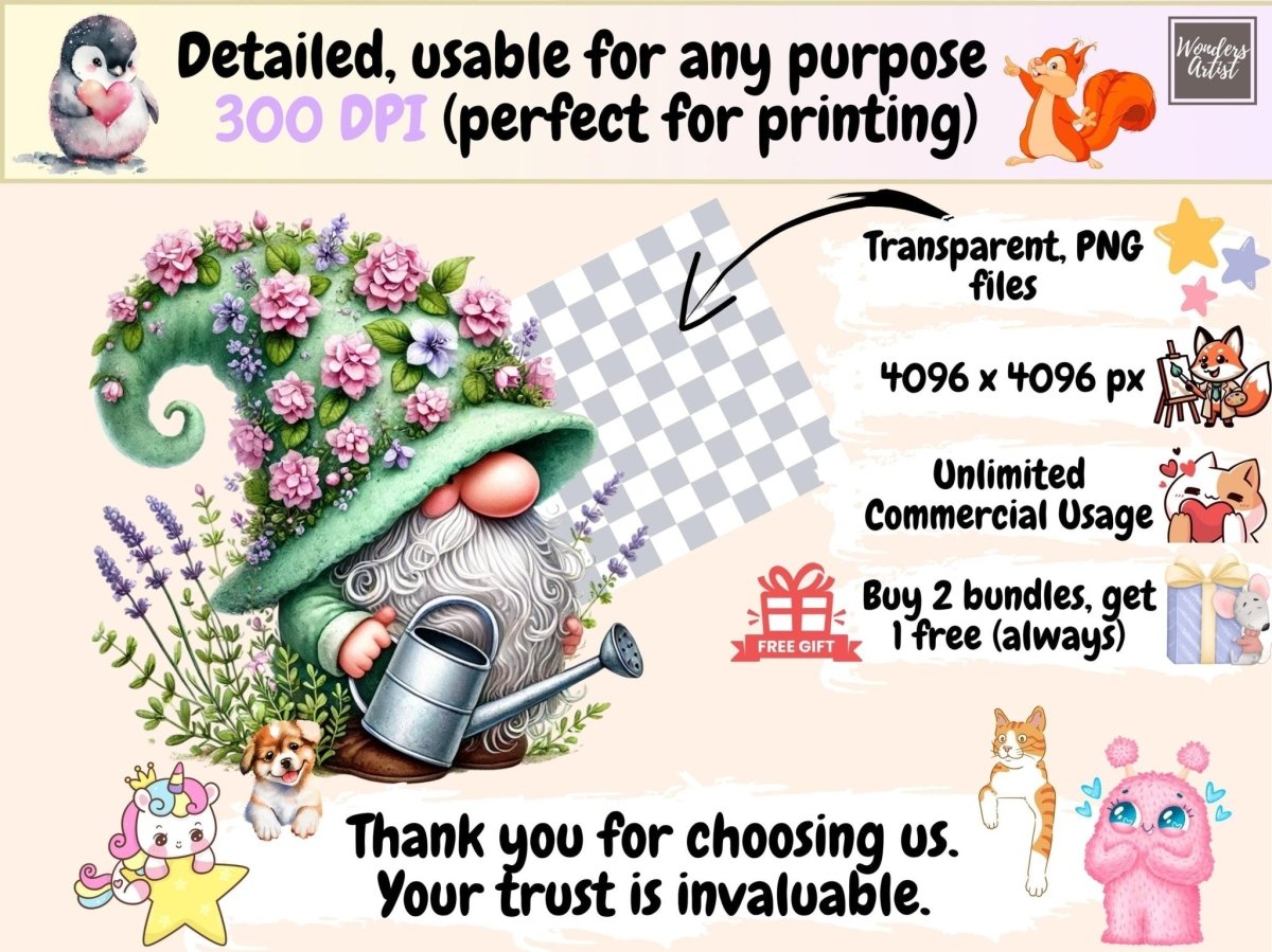 Clipart de fabrication de cartes avec gnomes de printemps