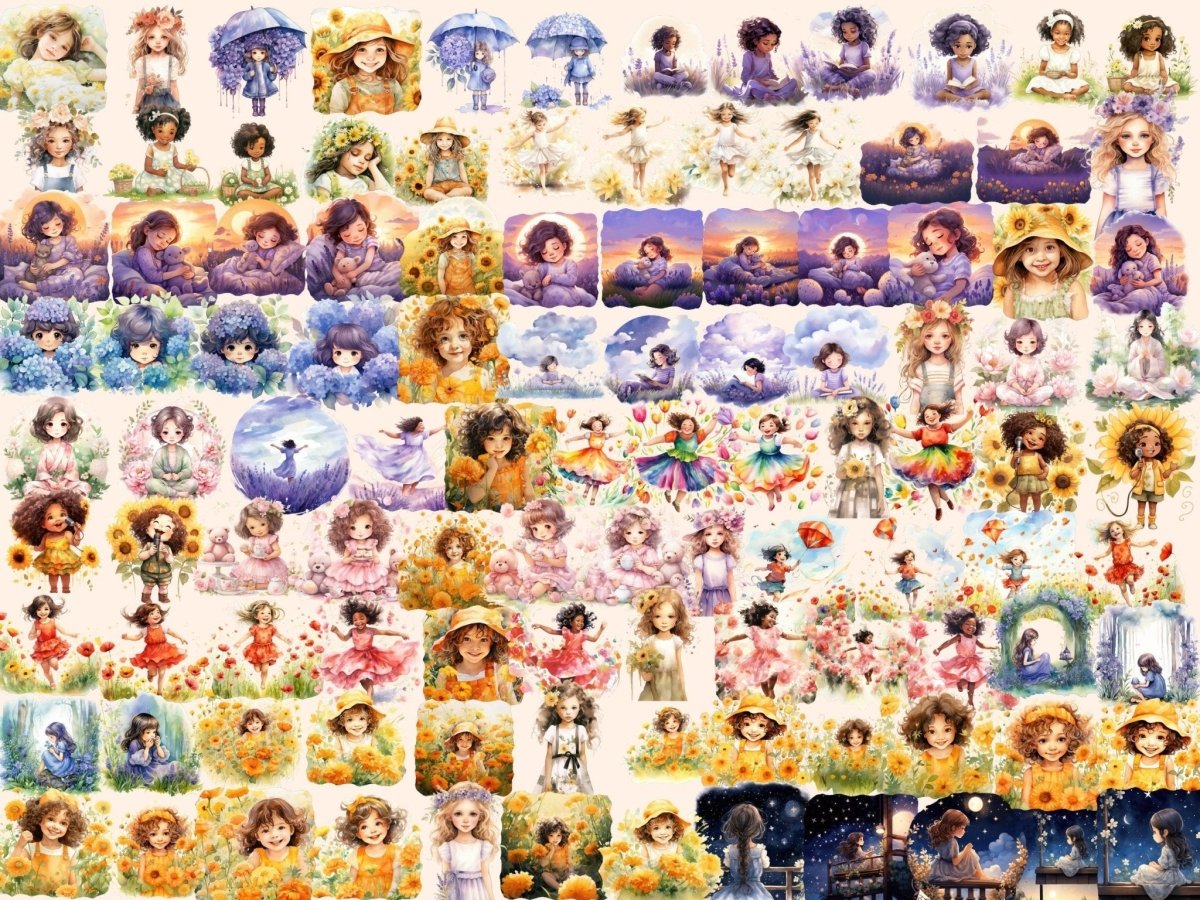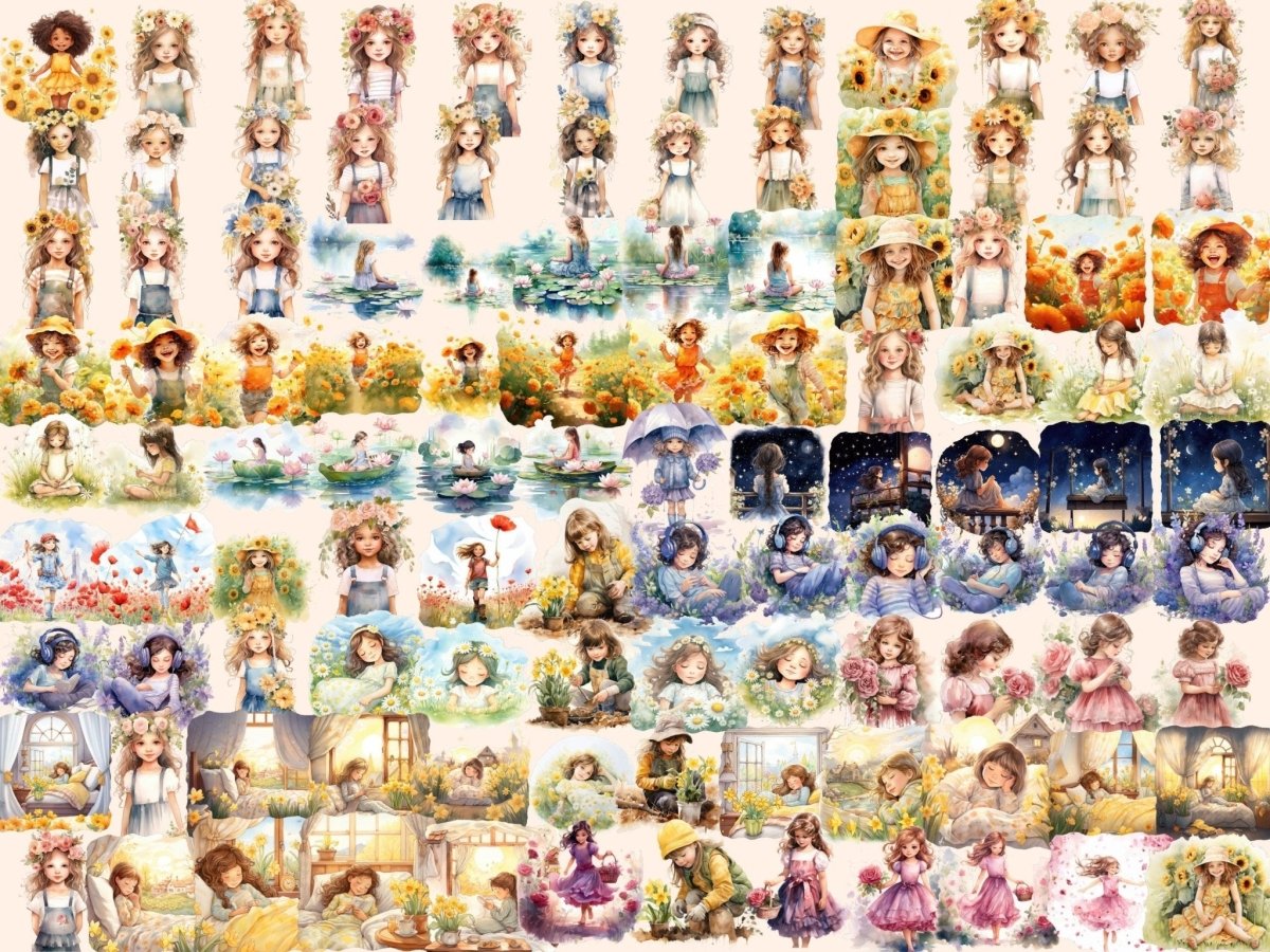 Bloemenmeisjes waterverfclipart