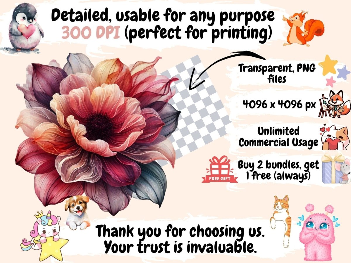 Fantasy Flowers Watercolor Clipart