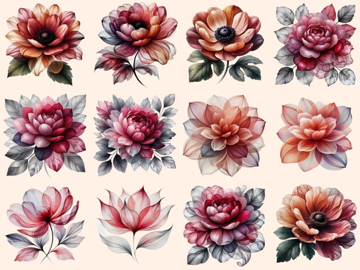 Iridescent Flowers Watercolor Clipart