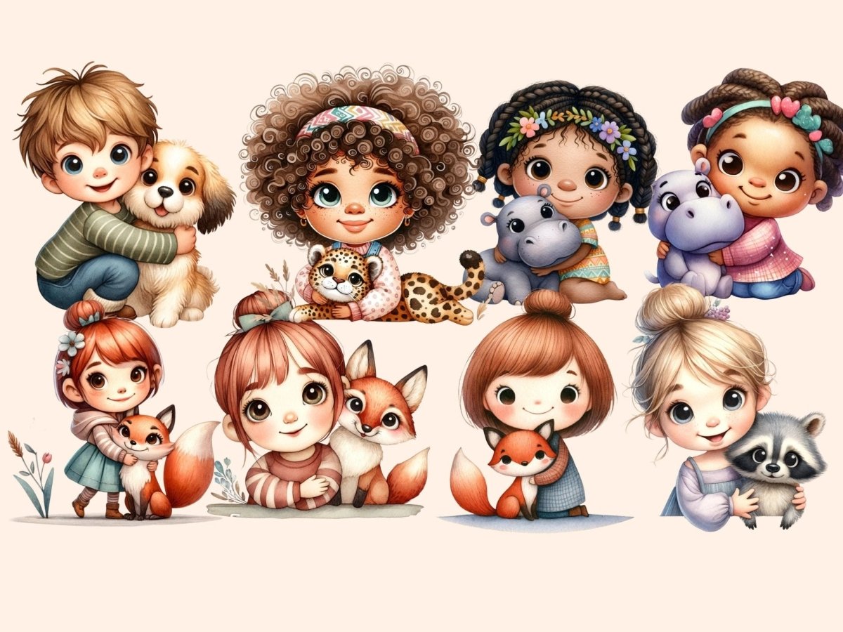 Animal Wheelbarrows Watercolor Clipart