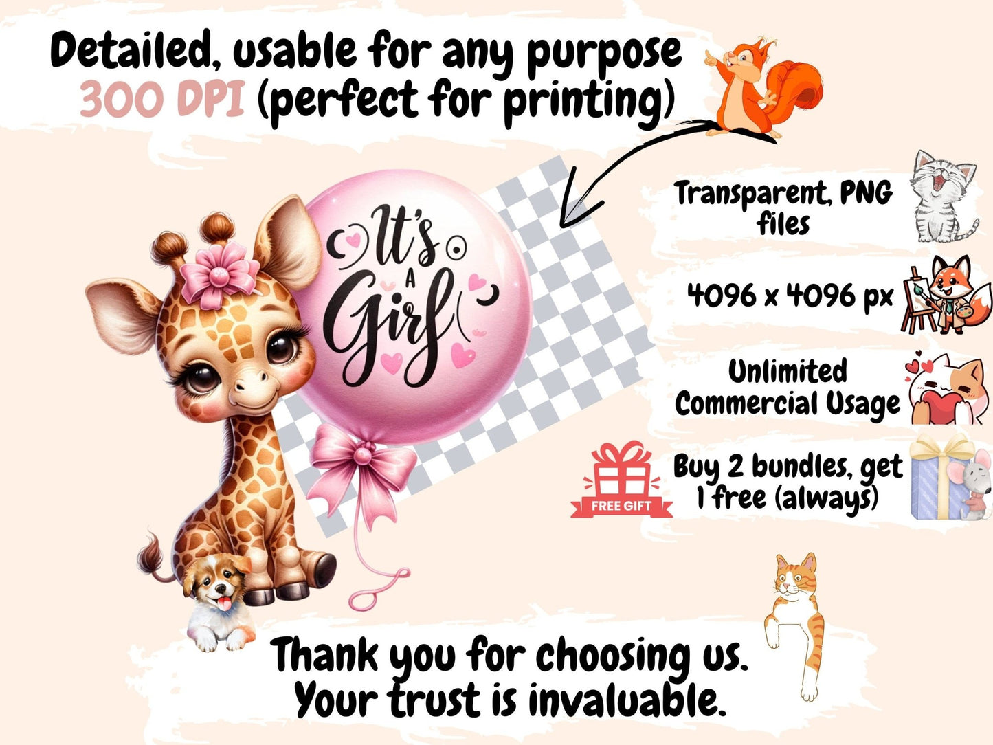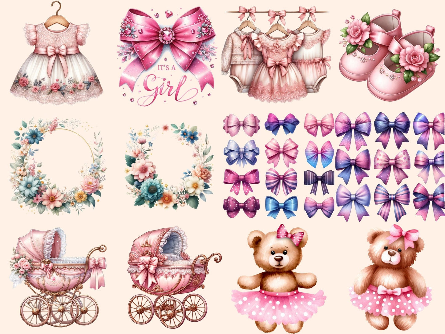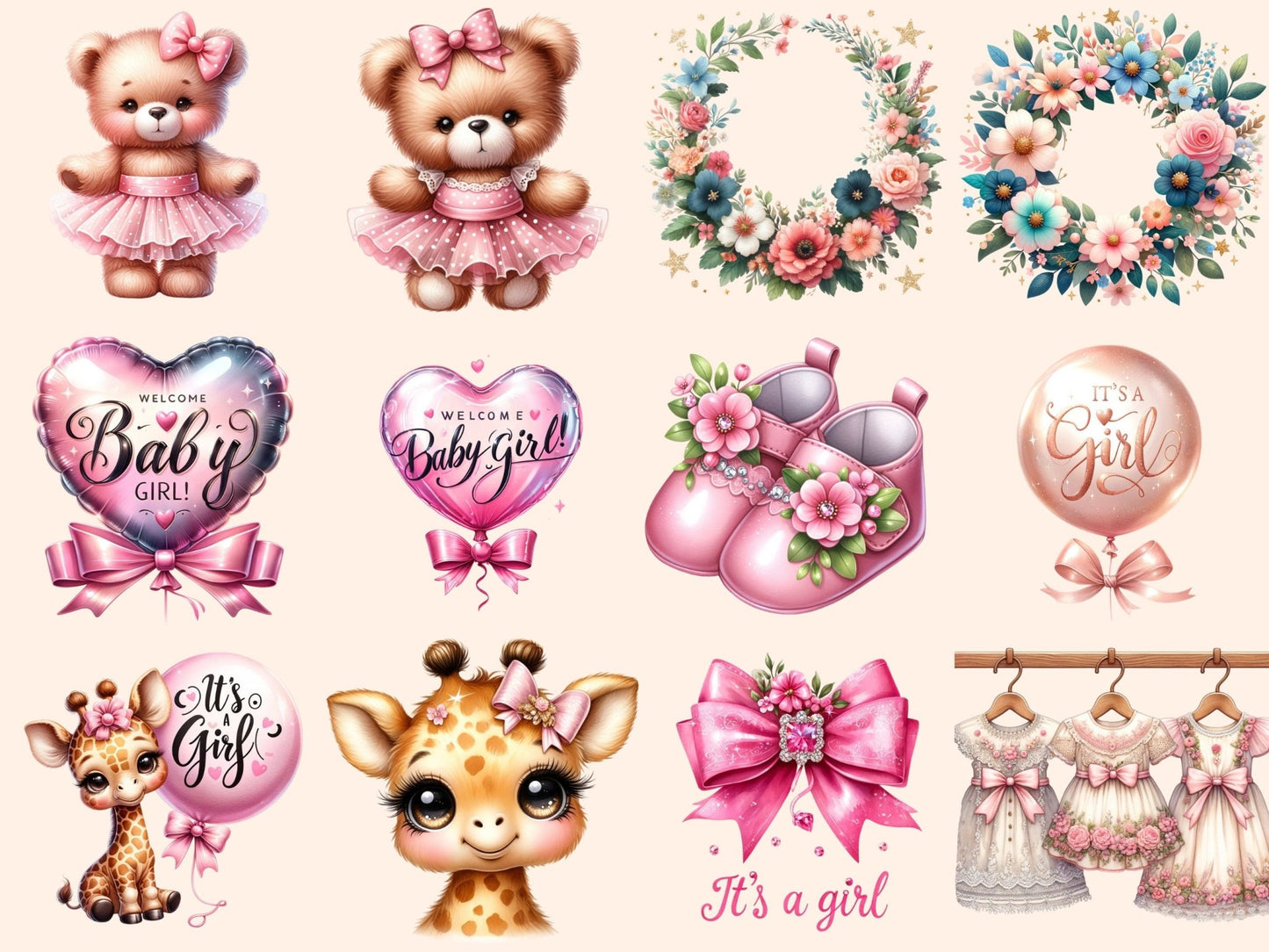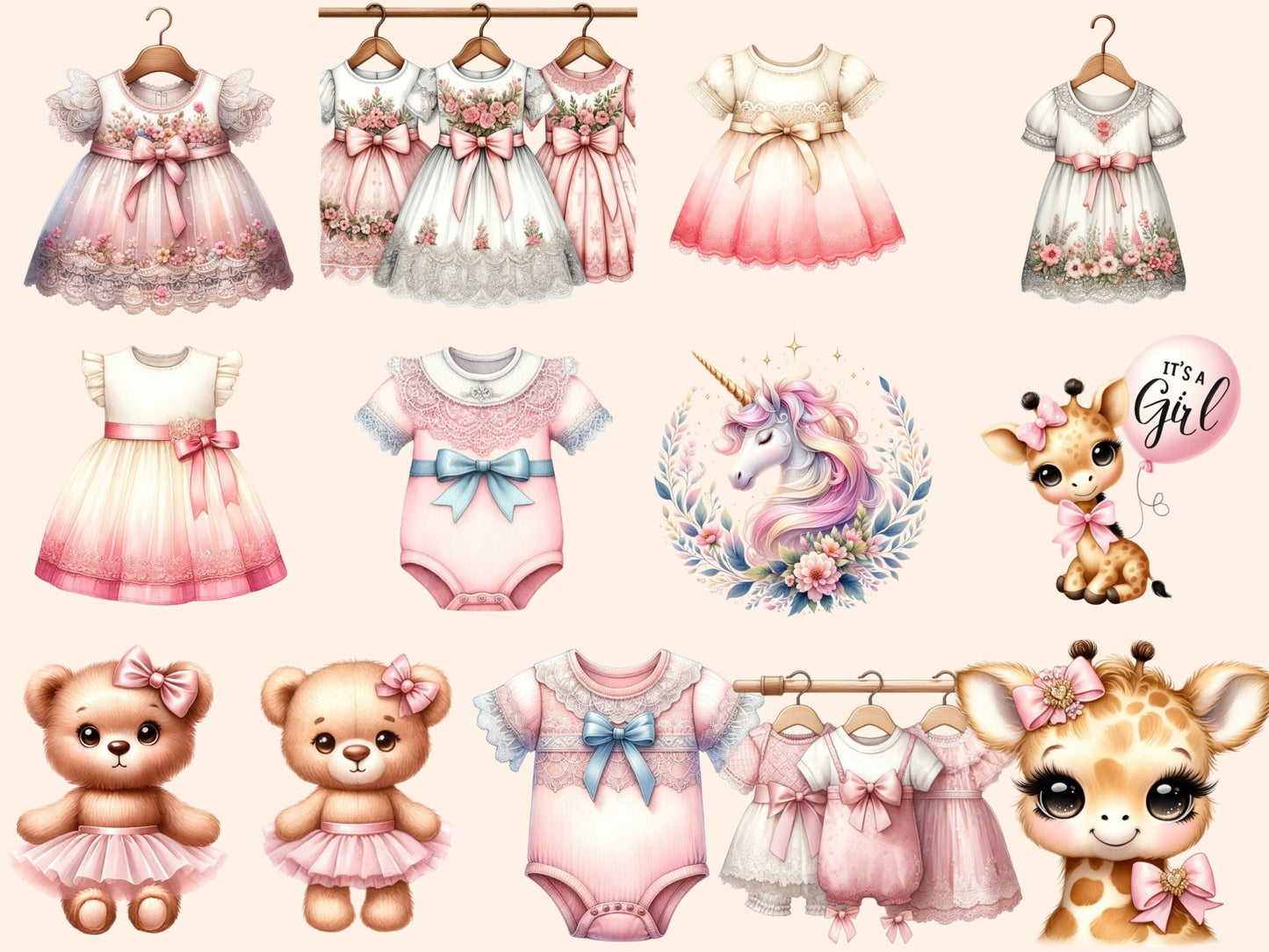 Baby Girl Animals Watercolor Clipart