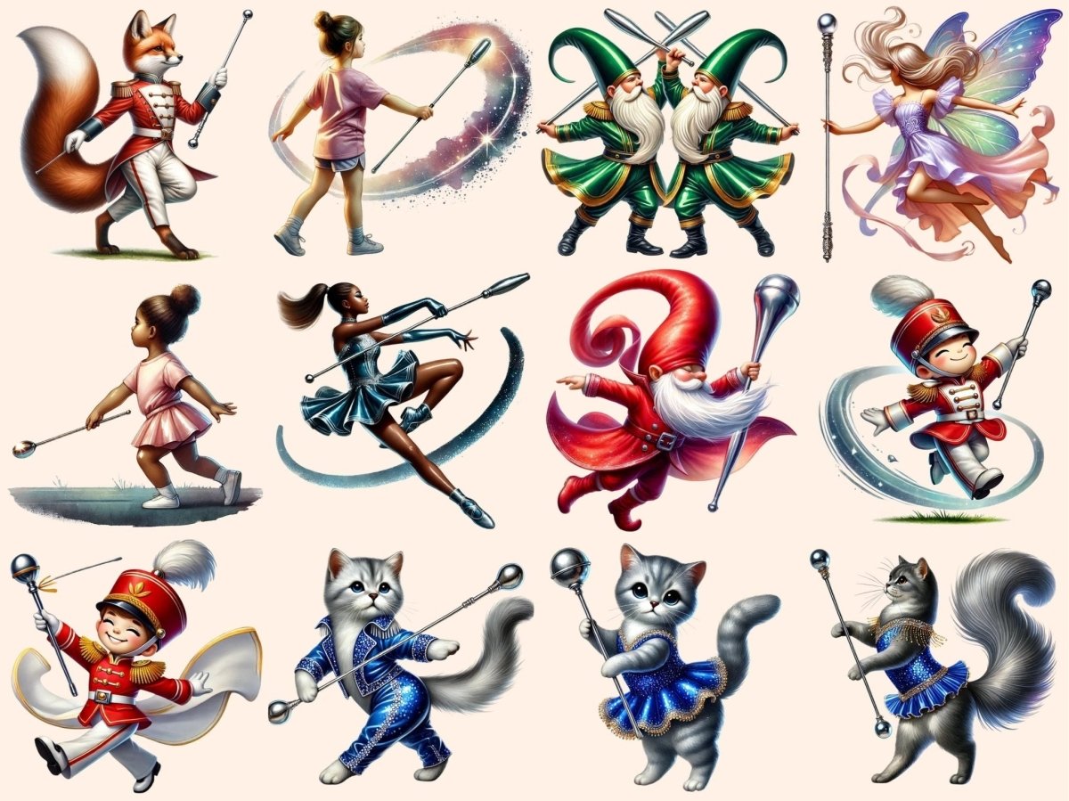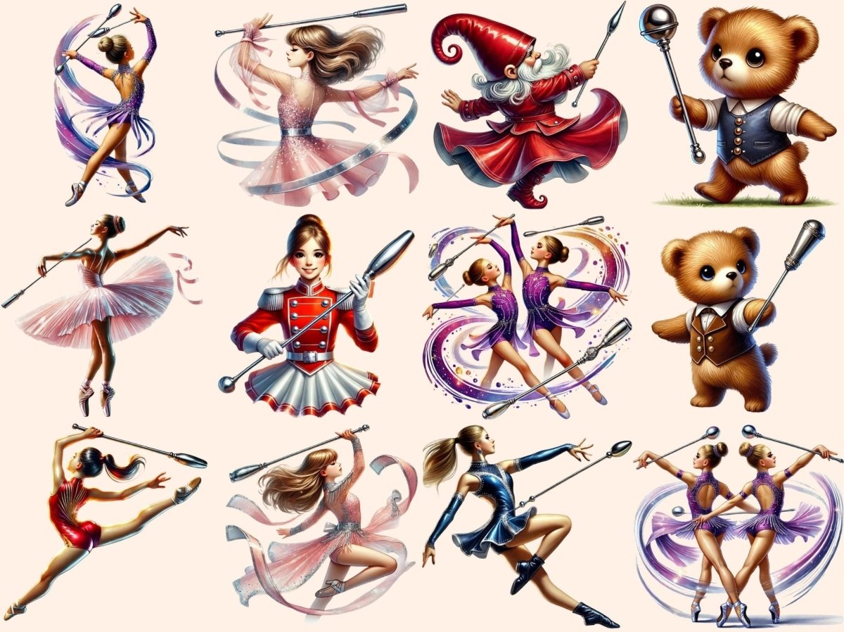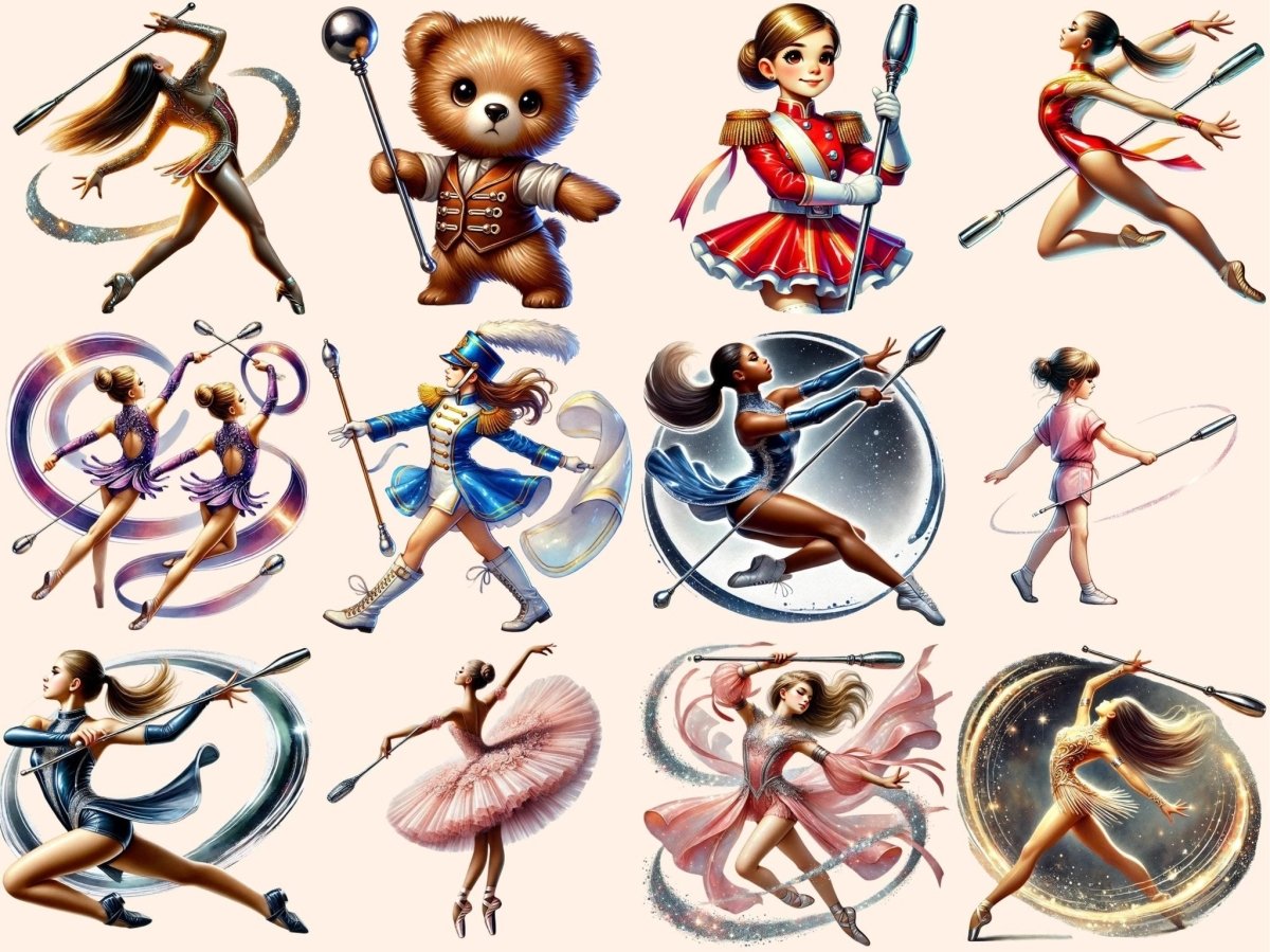 Baton Twirling Clipart is designed for digital creators, educators, coaches, and anyone who celebrates the artistry of twirling. You get transparent PNGs, 300 dpi (4096×4096 px; 13.65×13.65 in / 34.67×34.67 cm), with clean cut edges. Every digital element in this Baton Twirling Clipart bundle ... Show more...