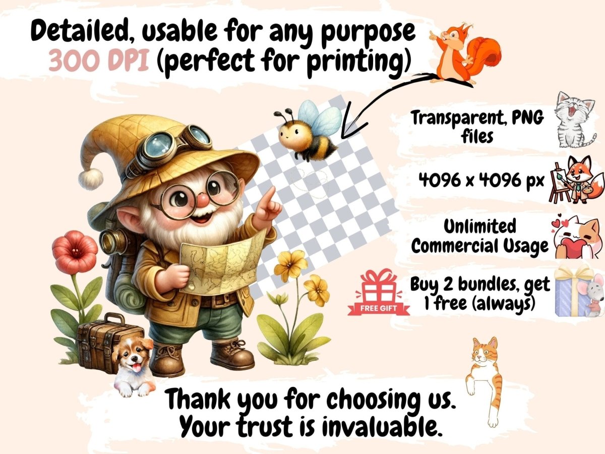 Cottagecore Gnomes Watercolor Clipart