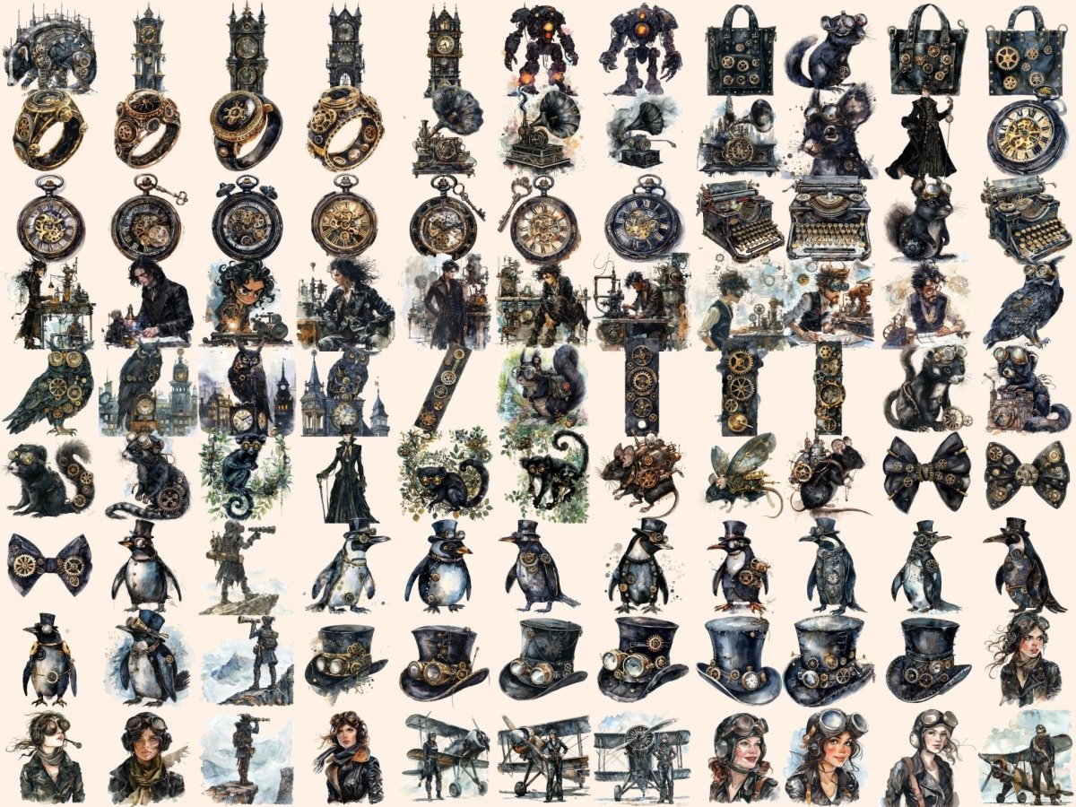 Sweet Steampunk Watercolor Clipart