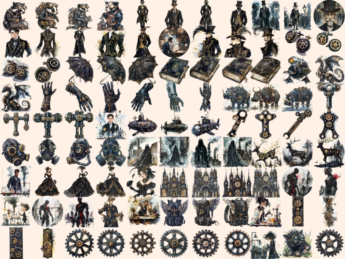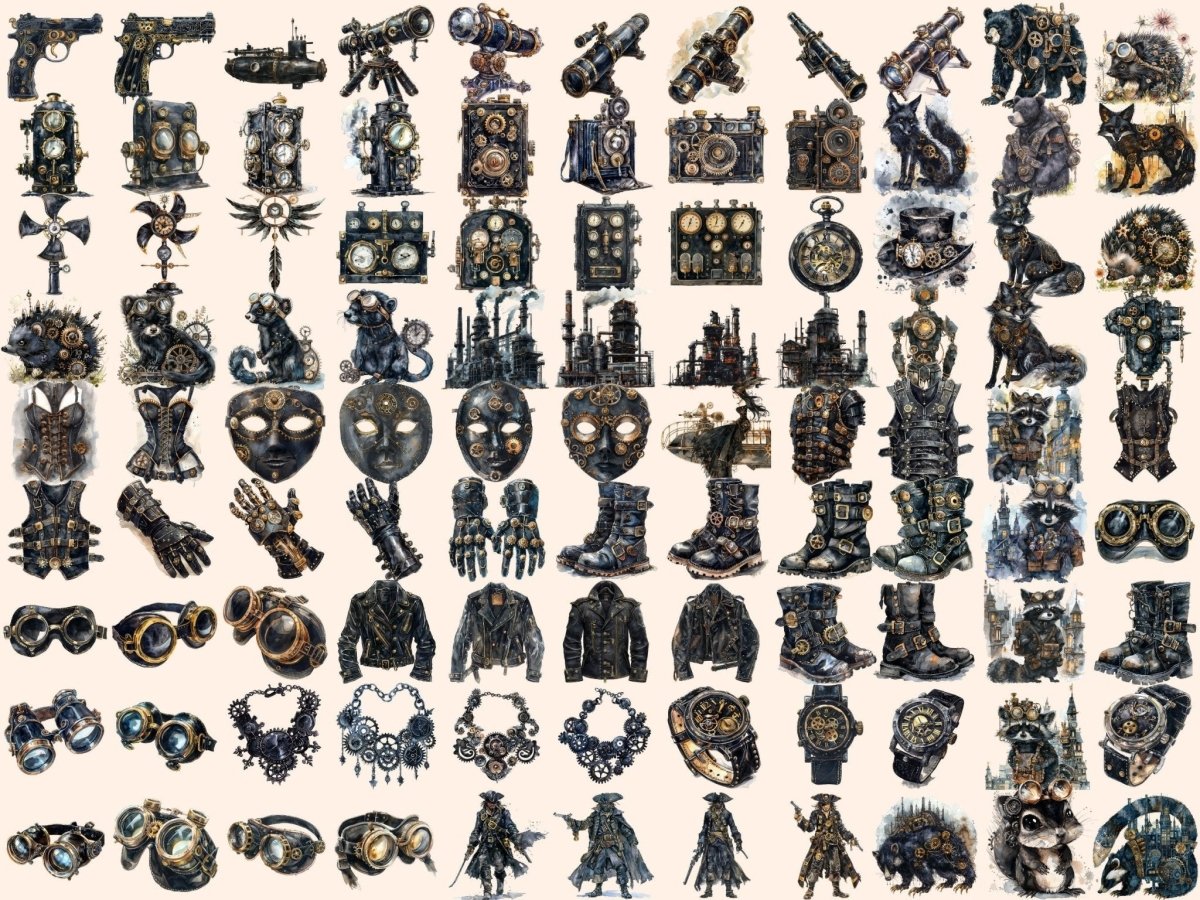 Steampunk Decor Watercolor Clipart