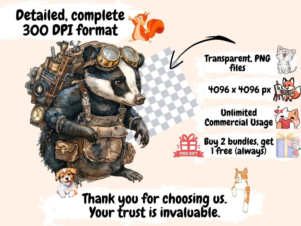 Steampunk Dogs Watercolor Clipart