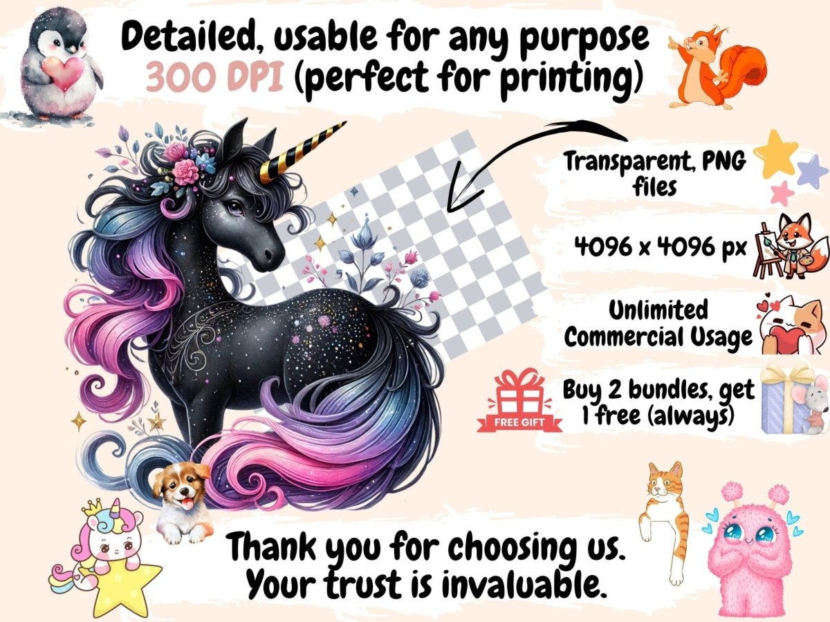 Dark Unicorns Watercolor Clipart