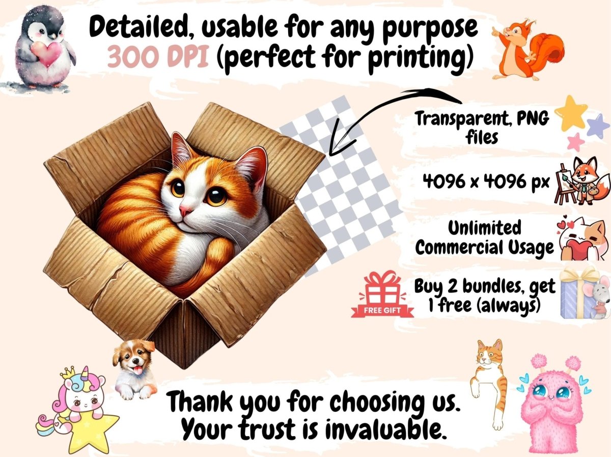 Cottagecore Cats Watercolor Clipart