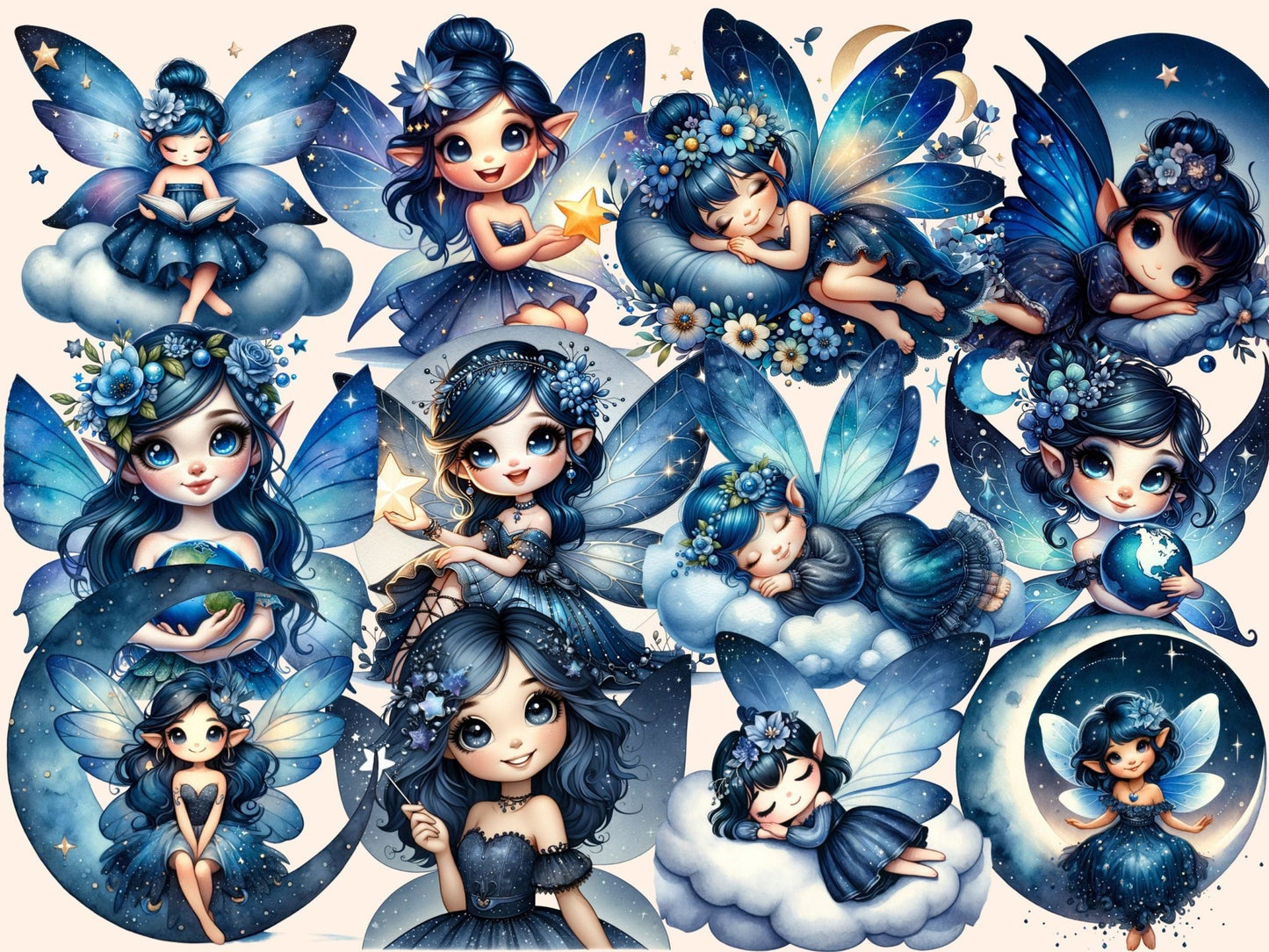 Celestial Fairies Watercolor Clipart