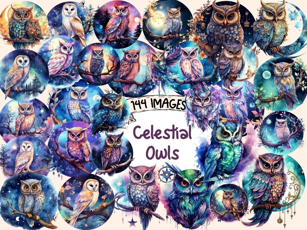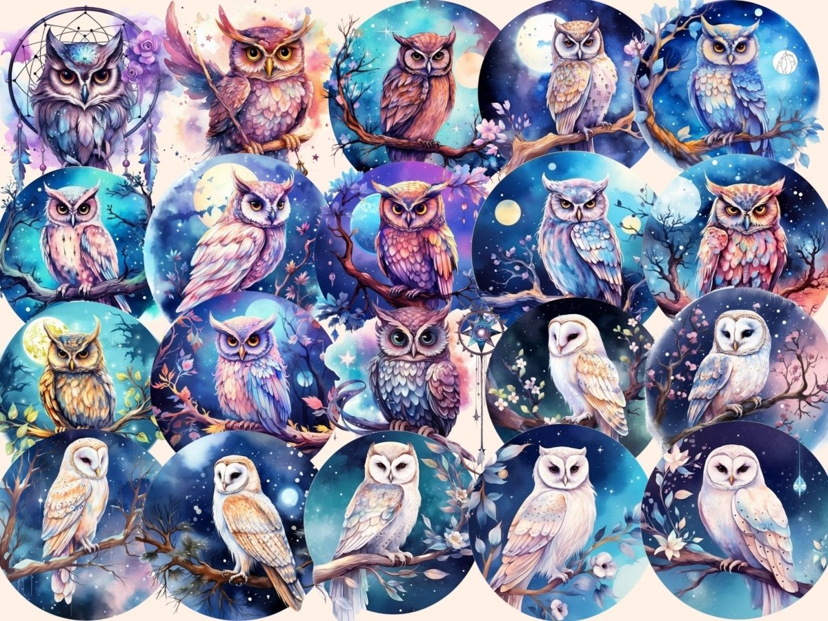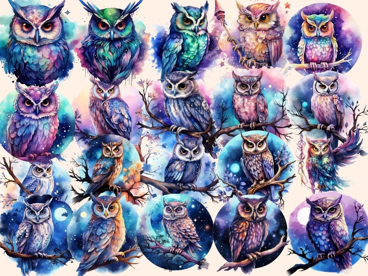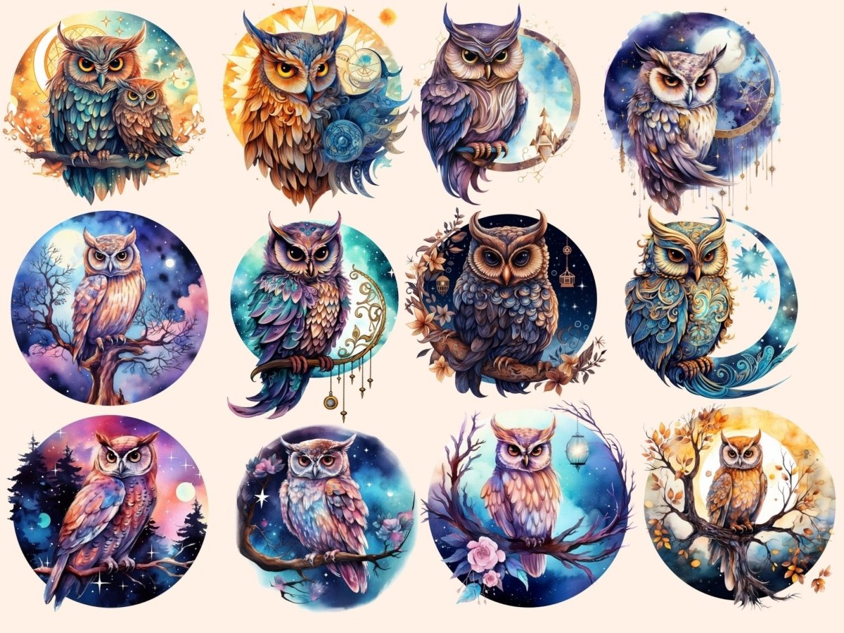 Elderwood Owls Watercolor Clipart