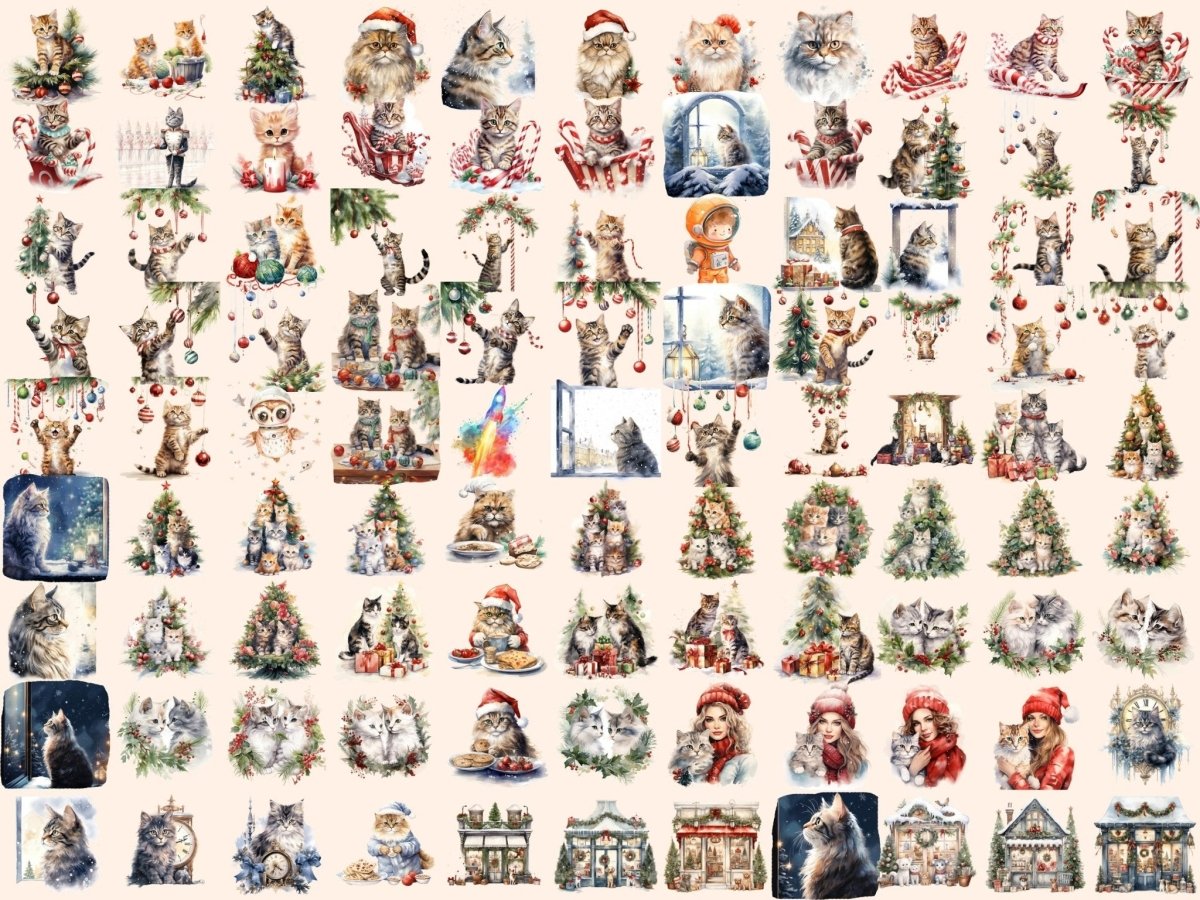 Light Blue & Silver Christmas Ornaments Watercolor Clipart