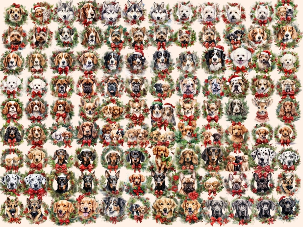 Christmas Dogs Watercolor Clipart