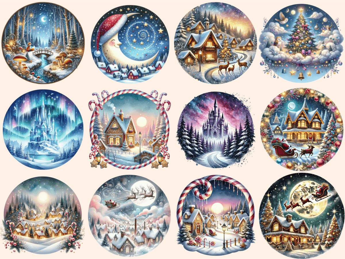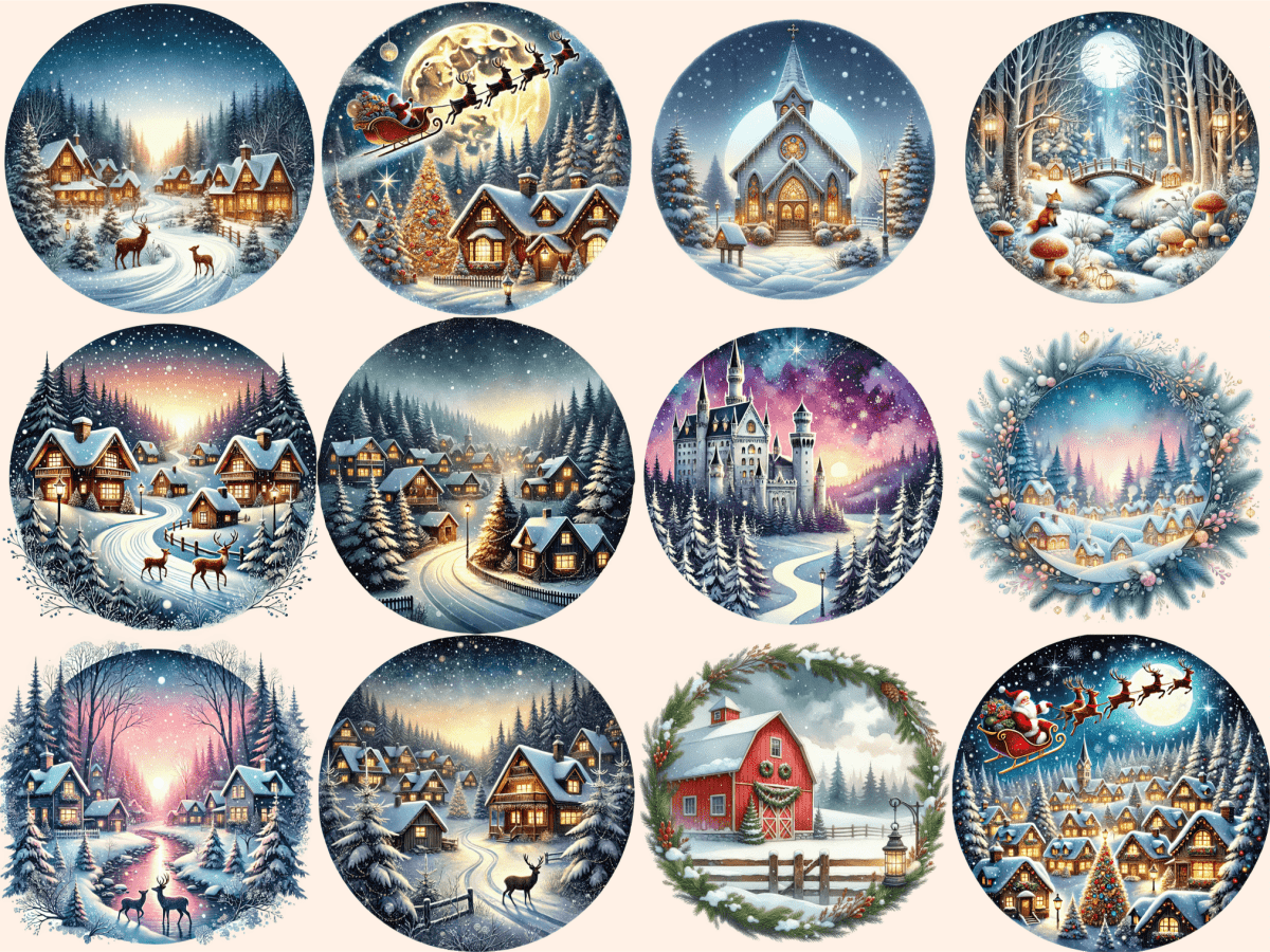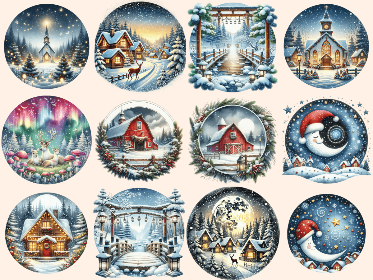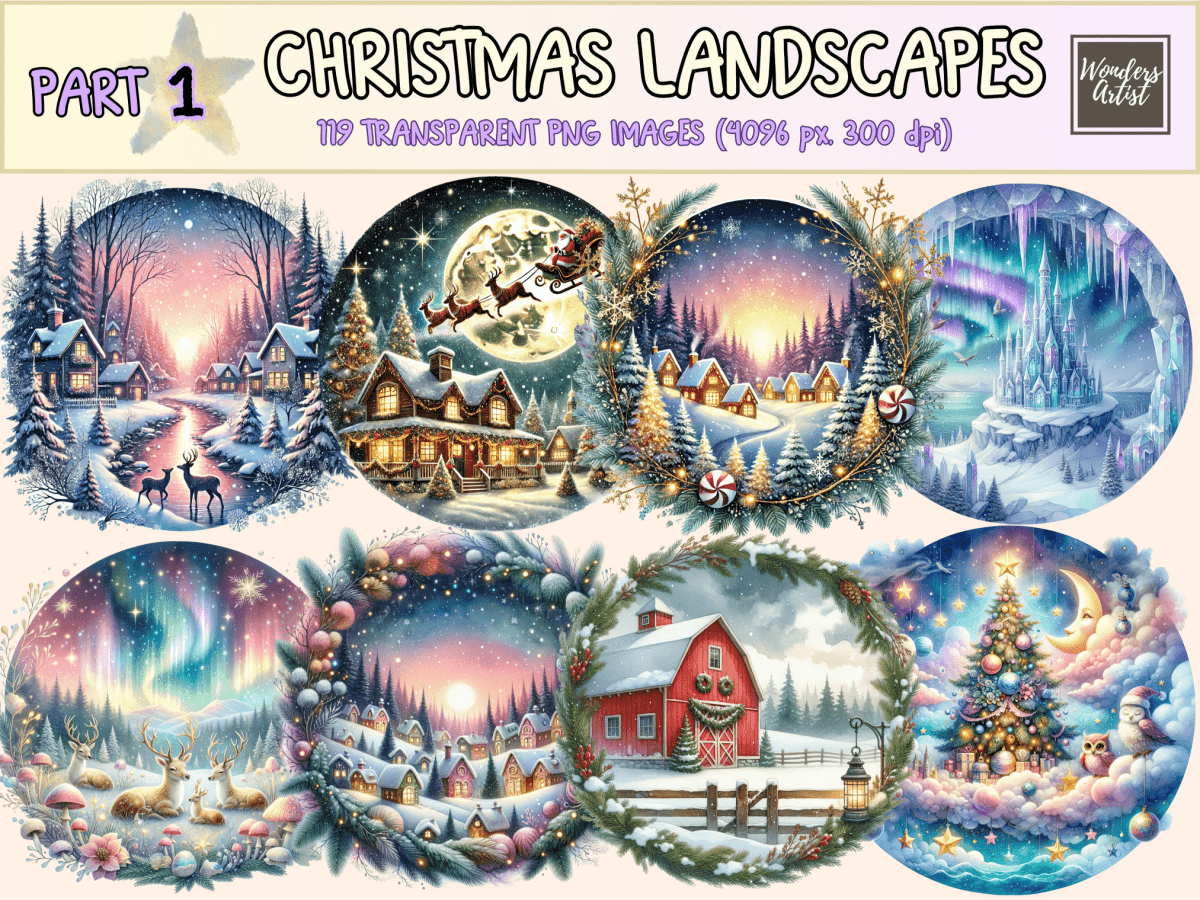 Christmas Landscapes Watercolor Clipart