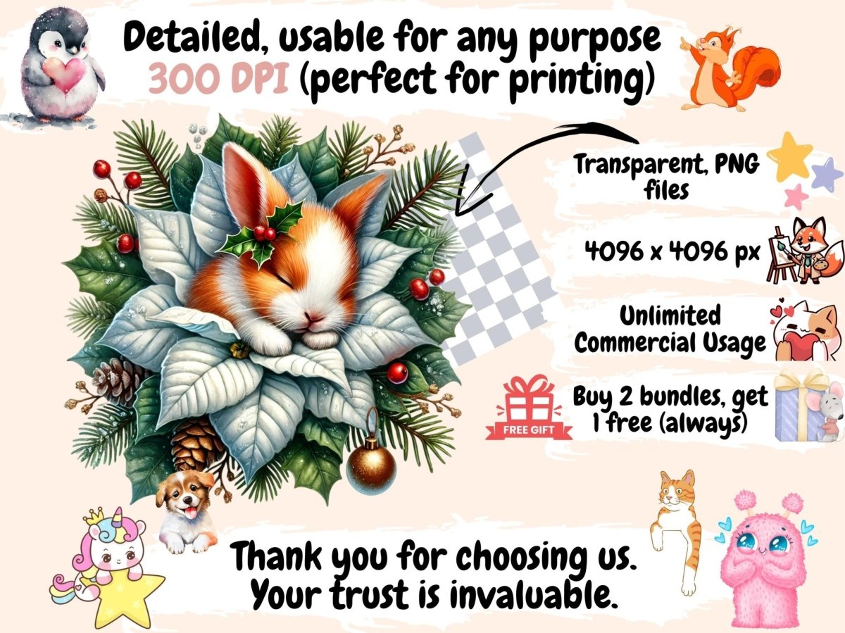 Christmas Sleepy Bunnies (P2) Clipart