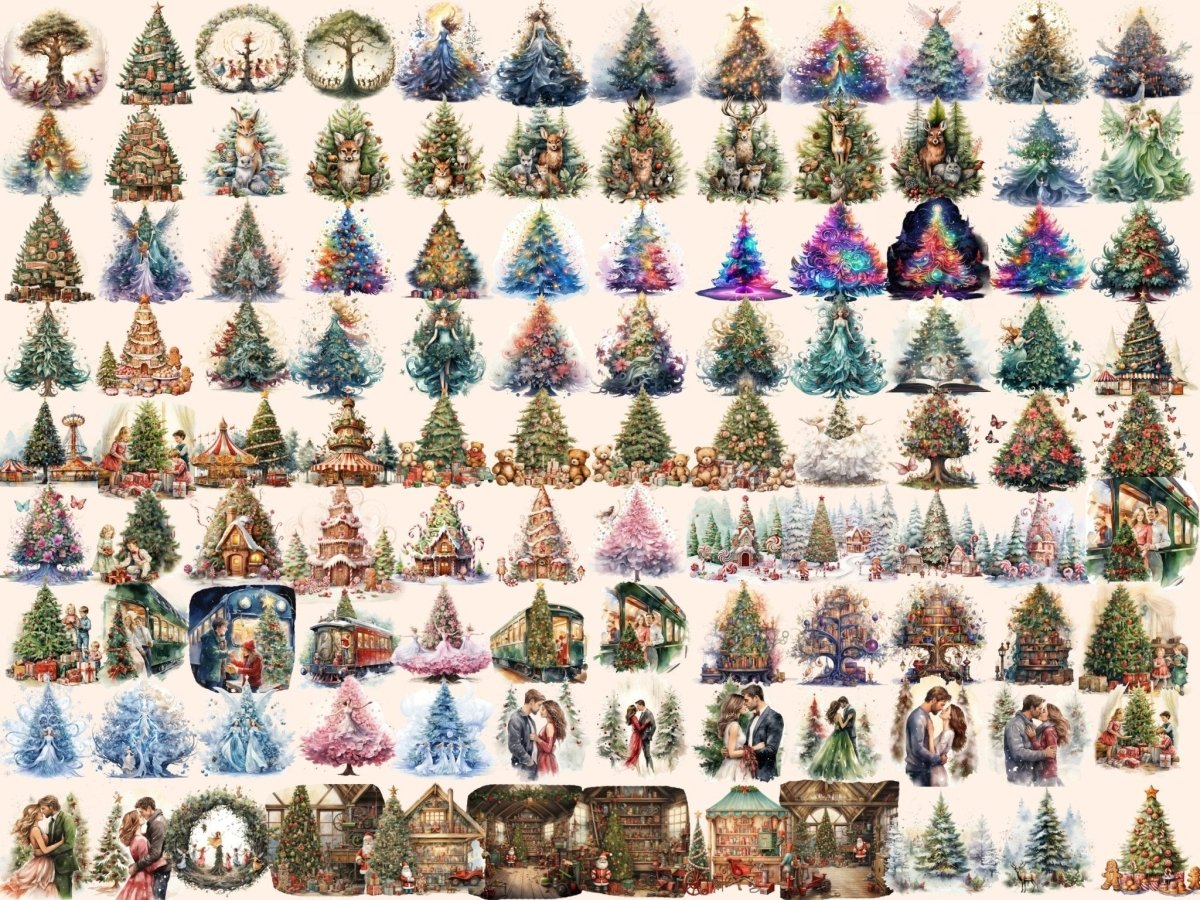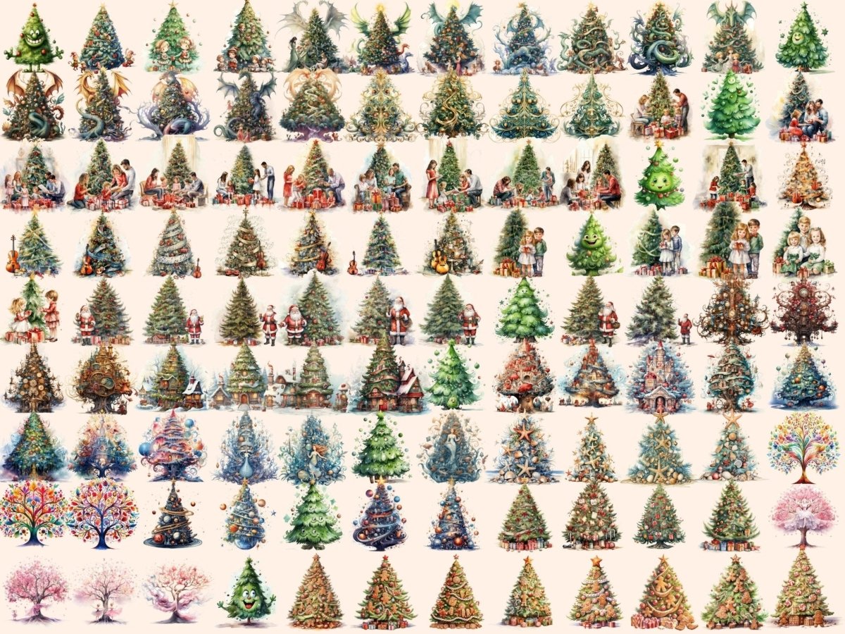 Red & Gold Christmas Ornaments Watercolor Clipart