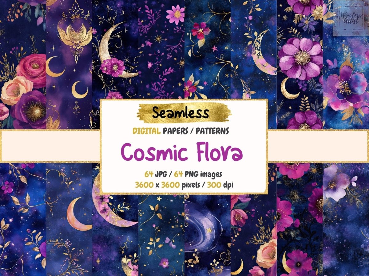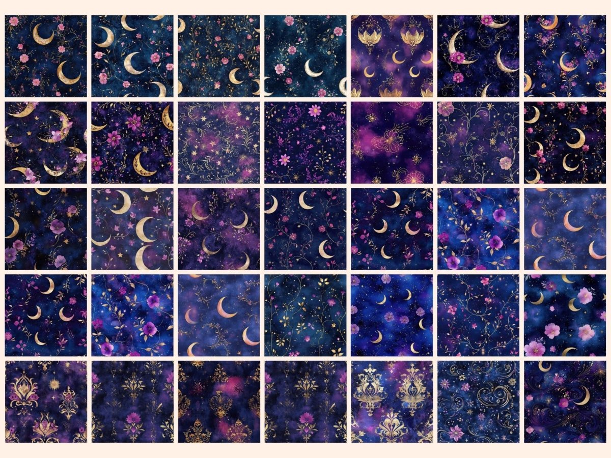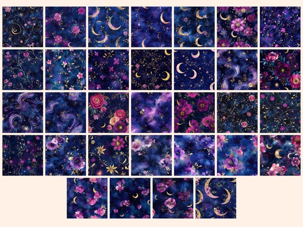 Celestial Garden Seamless Pattern Digital Papers