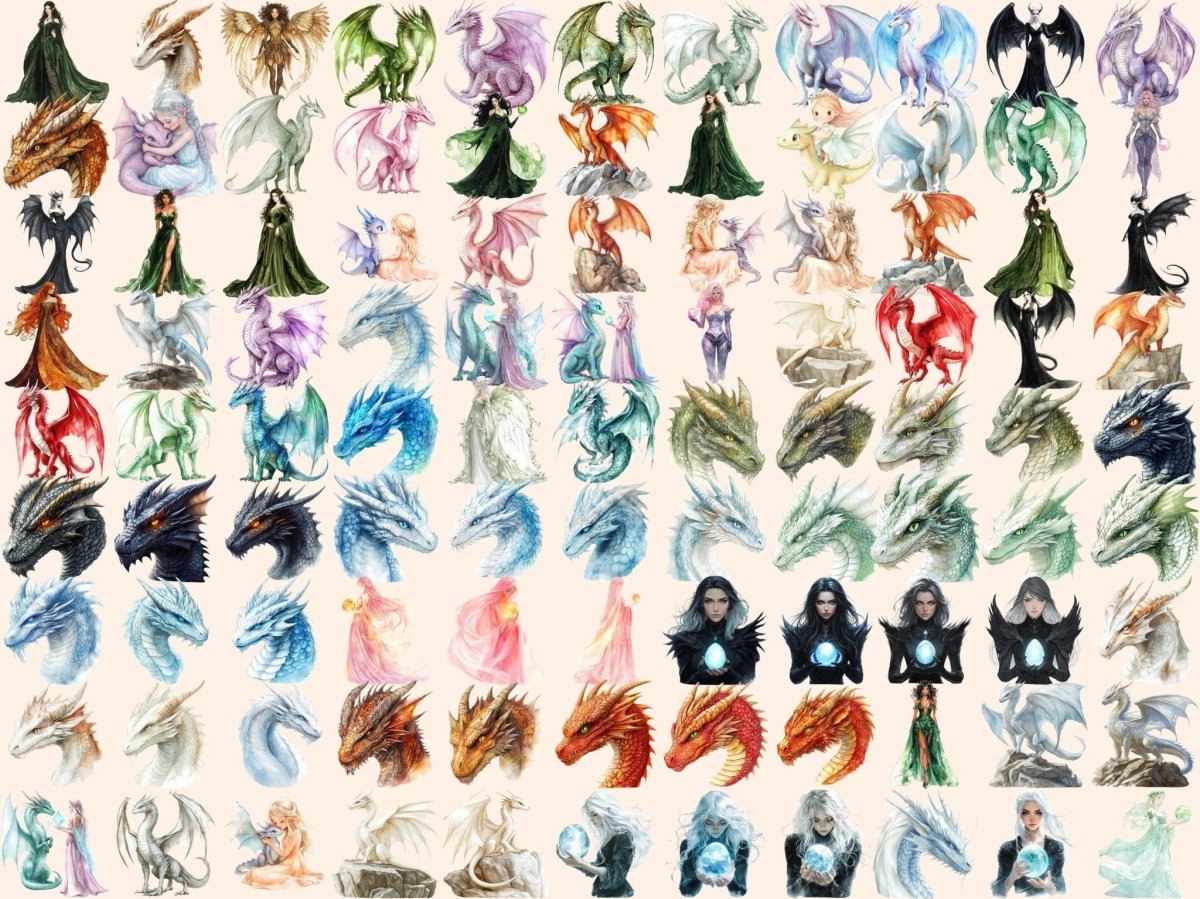 Elemental Dragons Watercolor Clipart