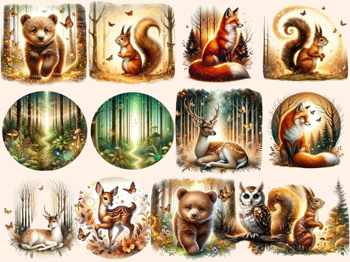 Enchanted Forest Animal Clipart offers creators, educators, and small business owners a collection of whimsical artwork that brings the outdoors to life. You get transparent PNGs, 300 dpi (4096×4096 px; 13.65×13.65 in / 34.67×34.67 cm), with clean cut edges. These digital clipart files cater t... Show more...