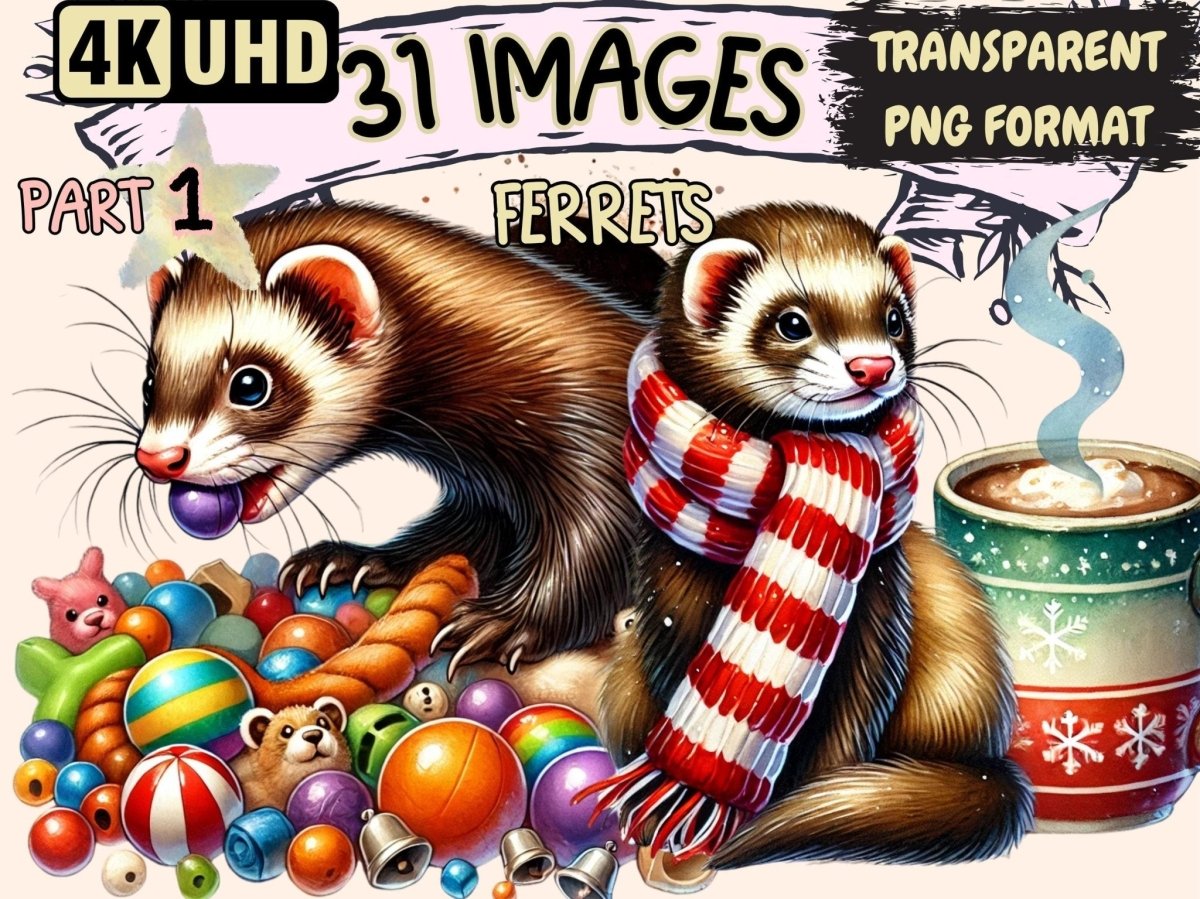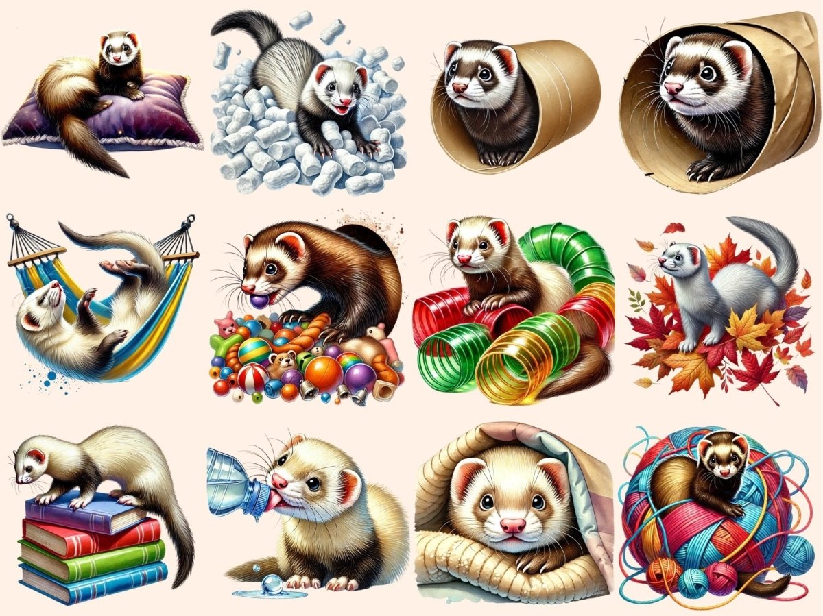 Ferrets Clipart offers a lively selection for designers, crafters, and pet enthusiasts who want to bring energy and charm to their projects. You get transparent PNGs, 300 dpi (4096×4096 px; 13.65×13.65 in / 34.67×34.67 cm), with clean cut edges.