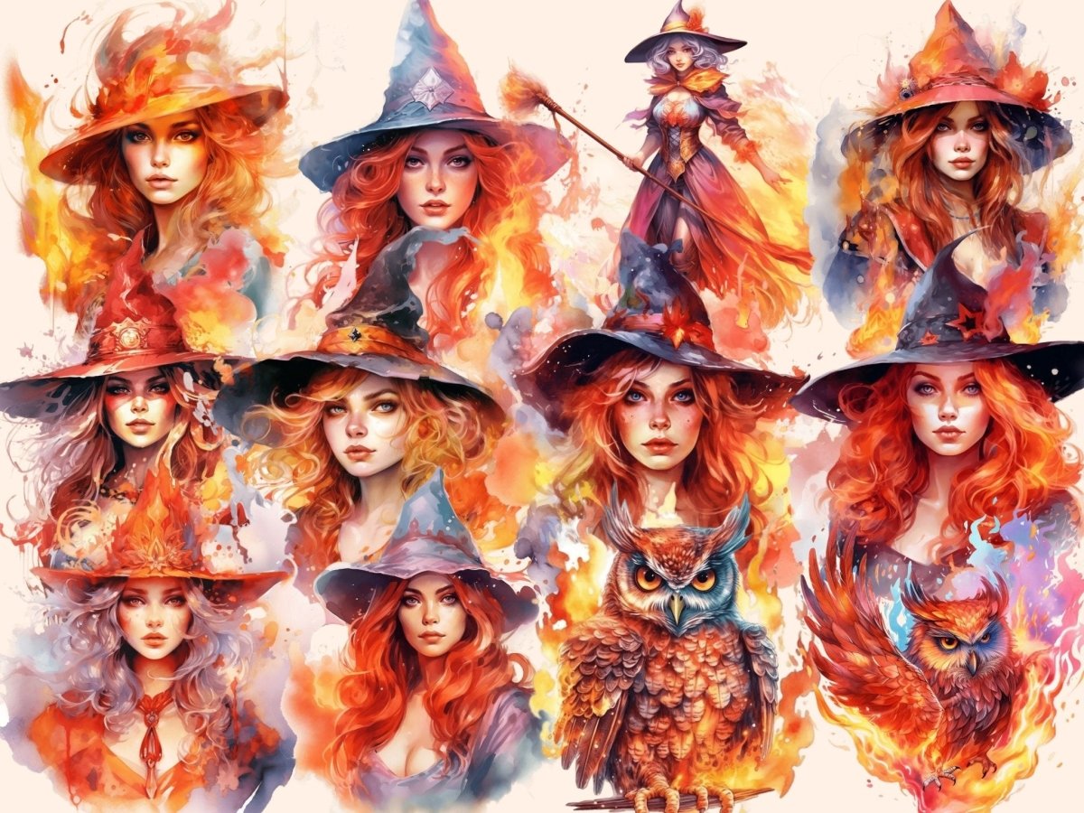 Ivory Witches Watercolor Clipart