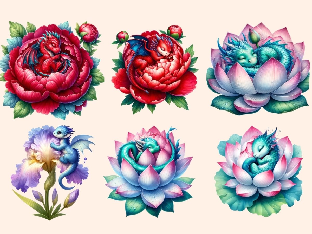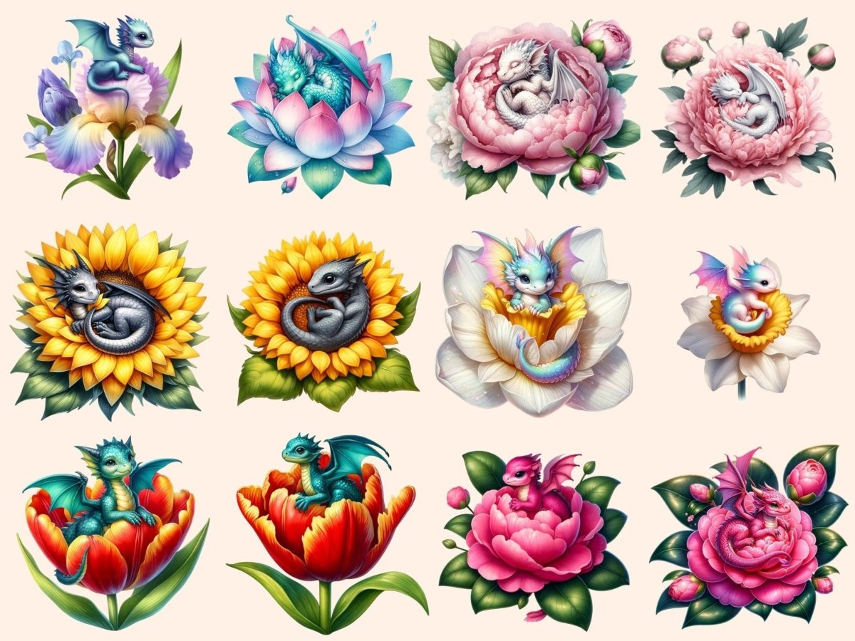 Floral Baby Dragons (P2) Clipart