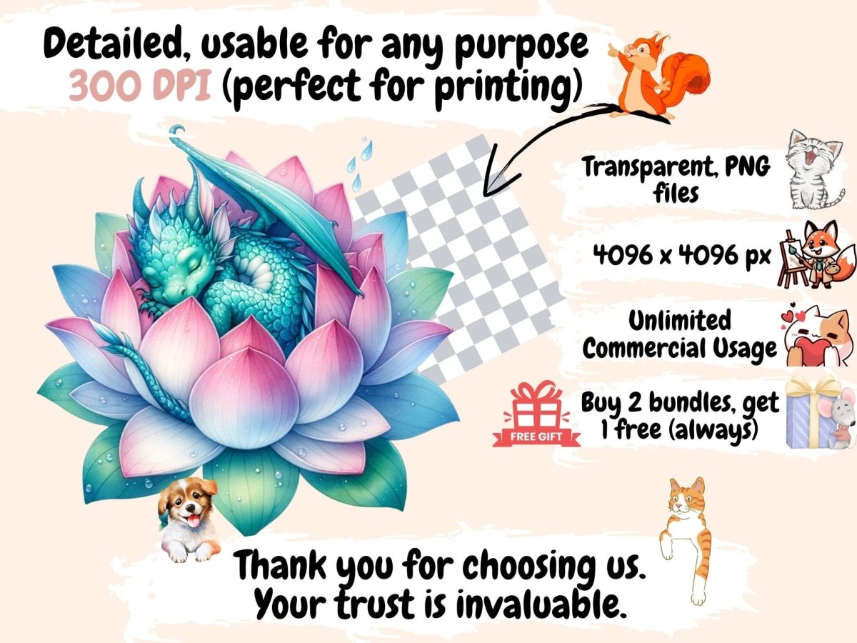 Floral Dragons Watercolor Clipart