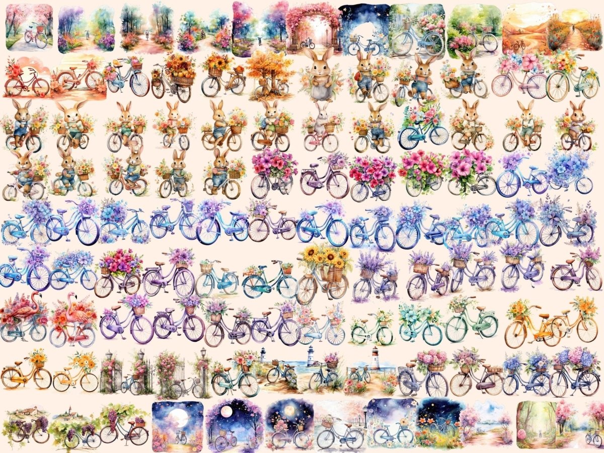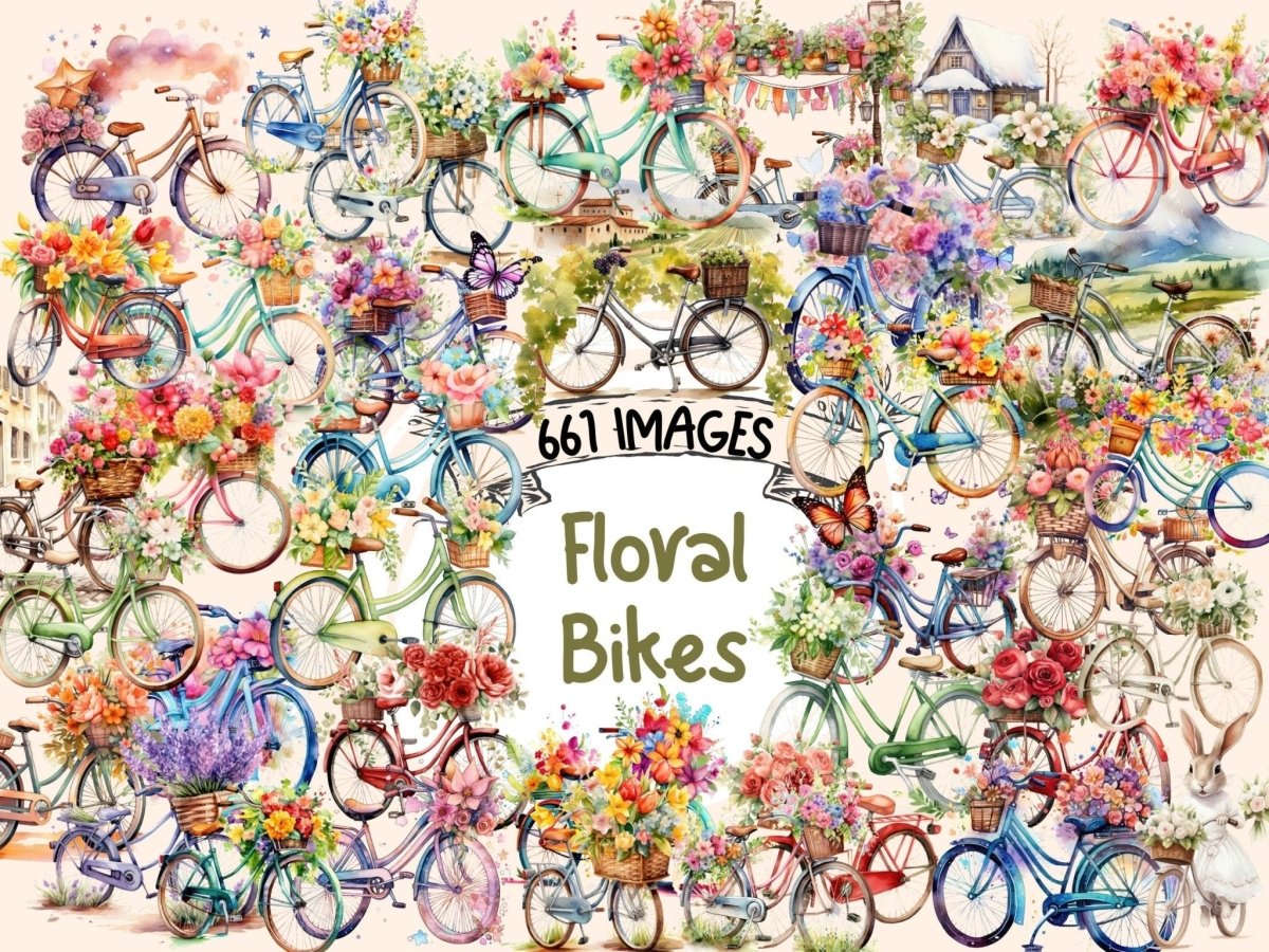 Floral Carts Watercolor Clipart