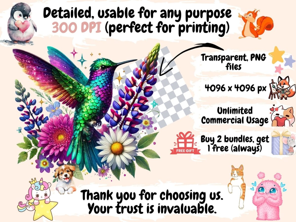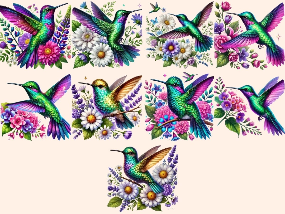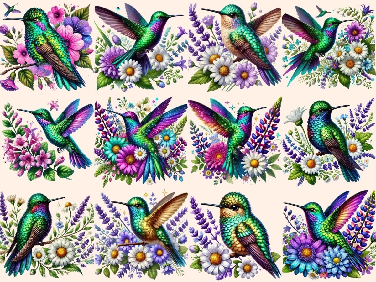 Floral Hummingbirds (P2) Clipart