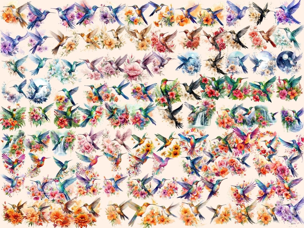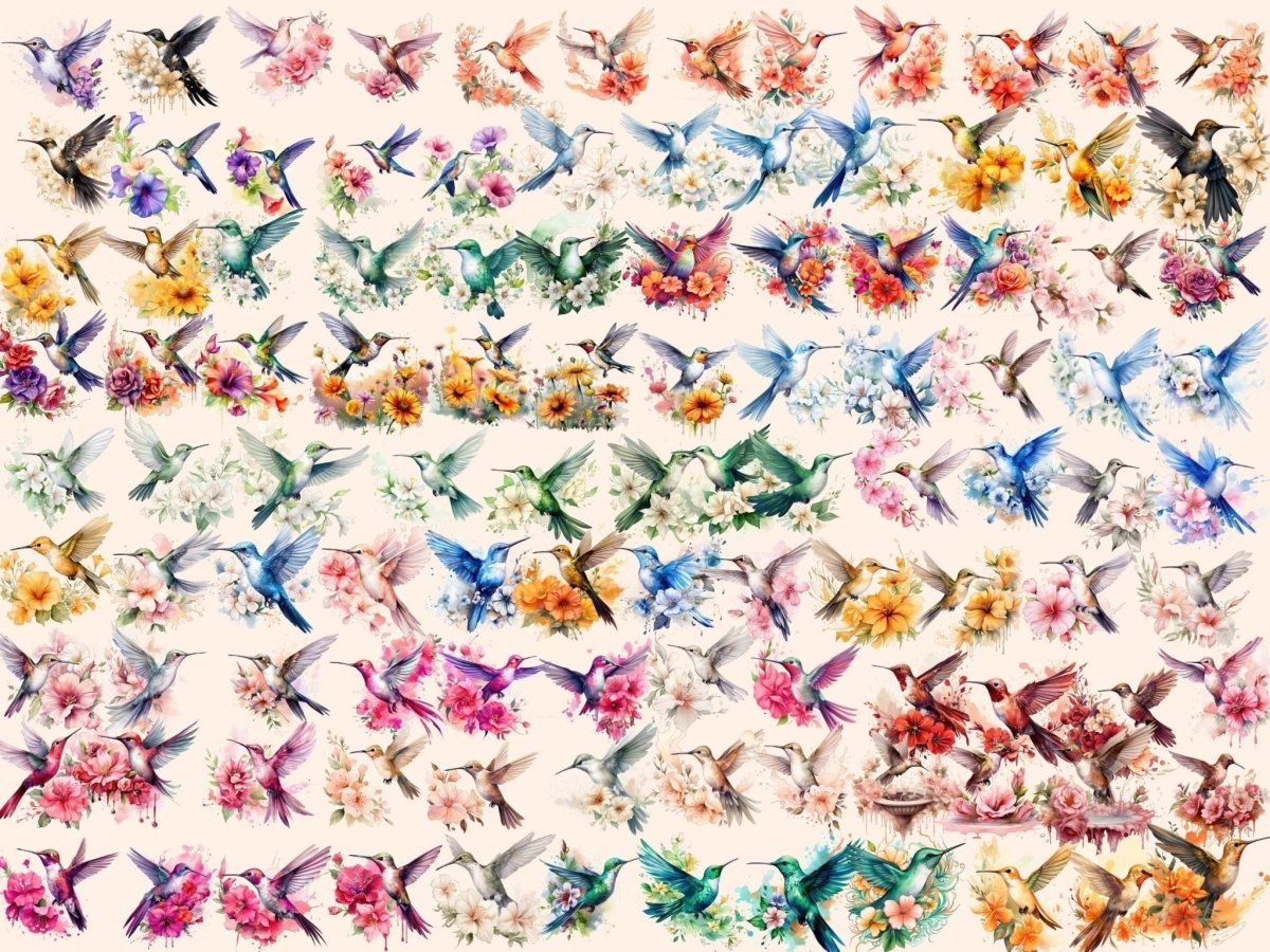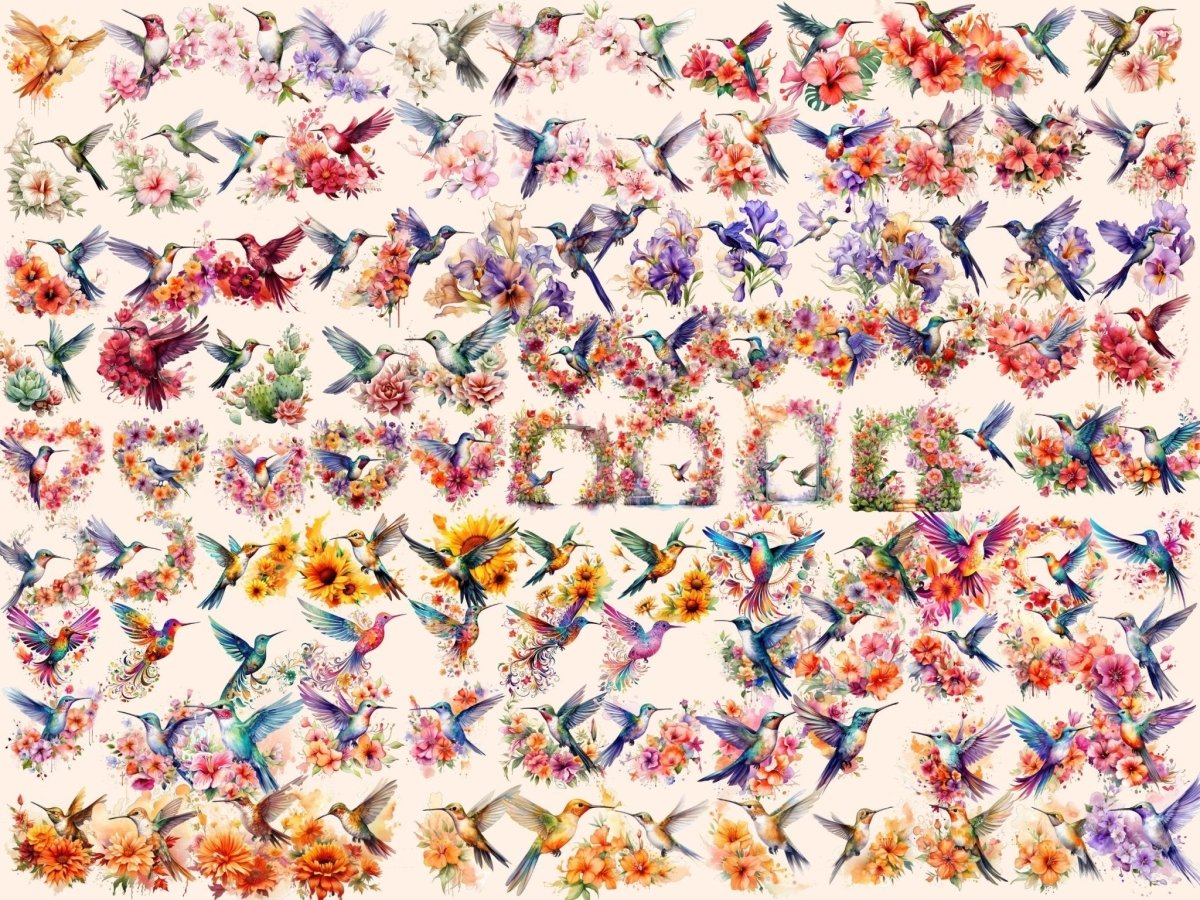 Floral Hummingbirds (P2) Clipart
