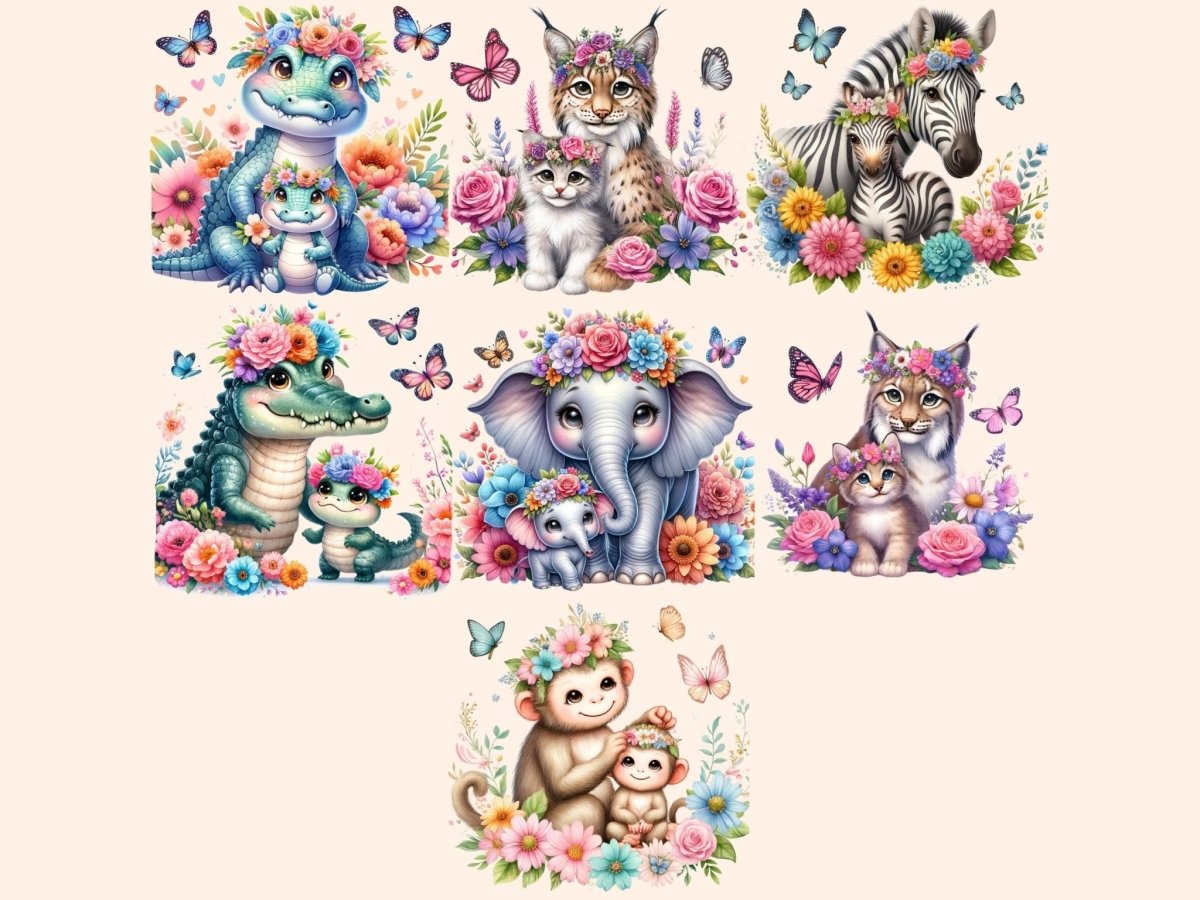 Floral Crown Animals Watercolor Clipart