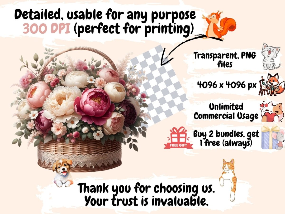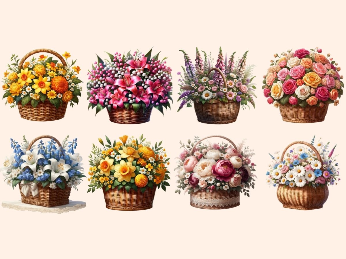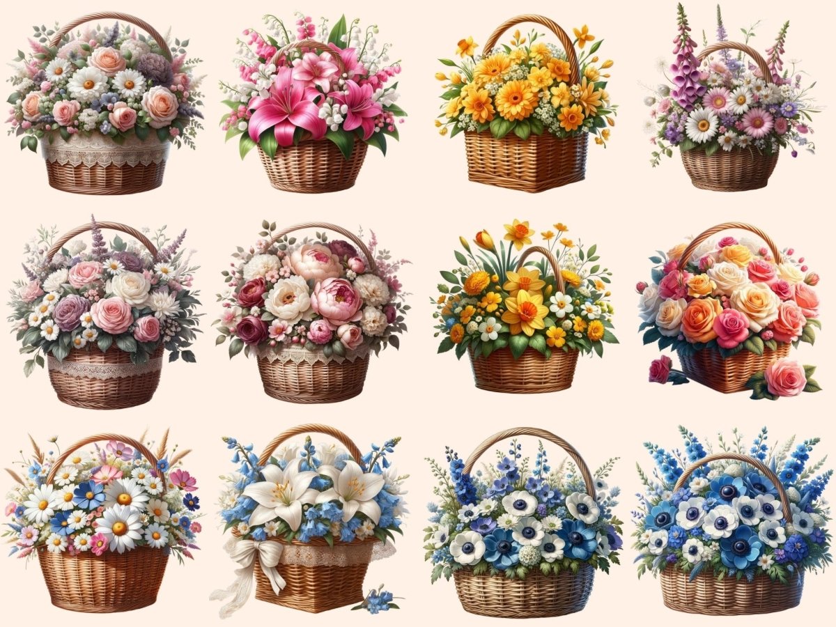 Floral Baskets Watercolor Clipart