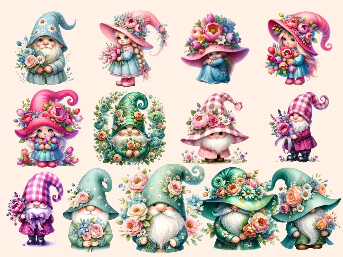 Floral Teacup Gnomes Clipart