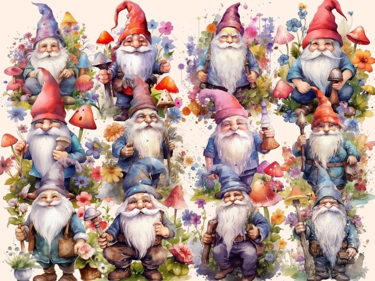 Cottagecore Gnomes Watercolor Clipart