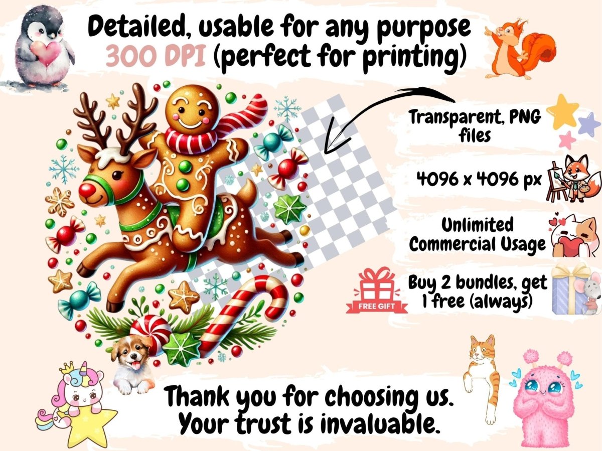 Gingerbread Christmas Watercolor Clipart