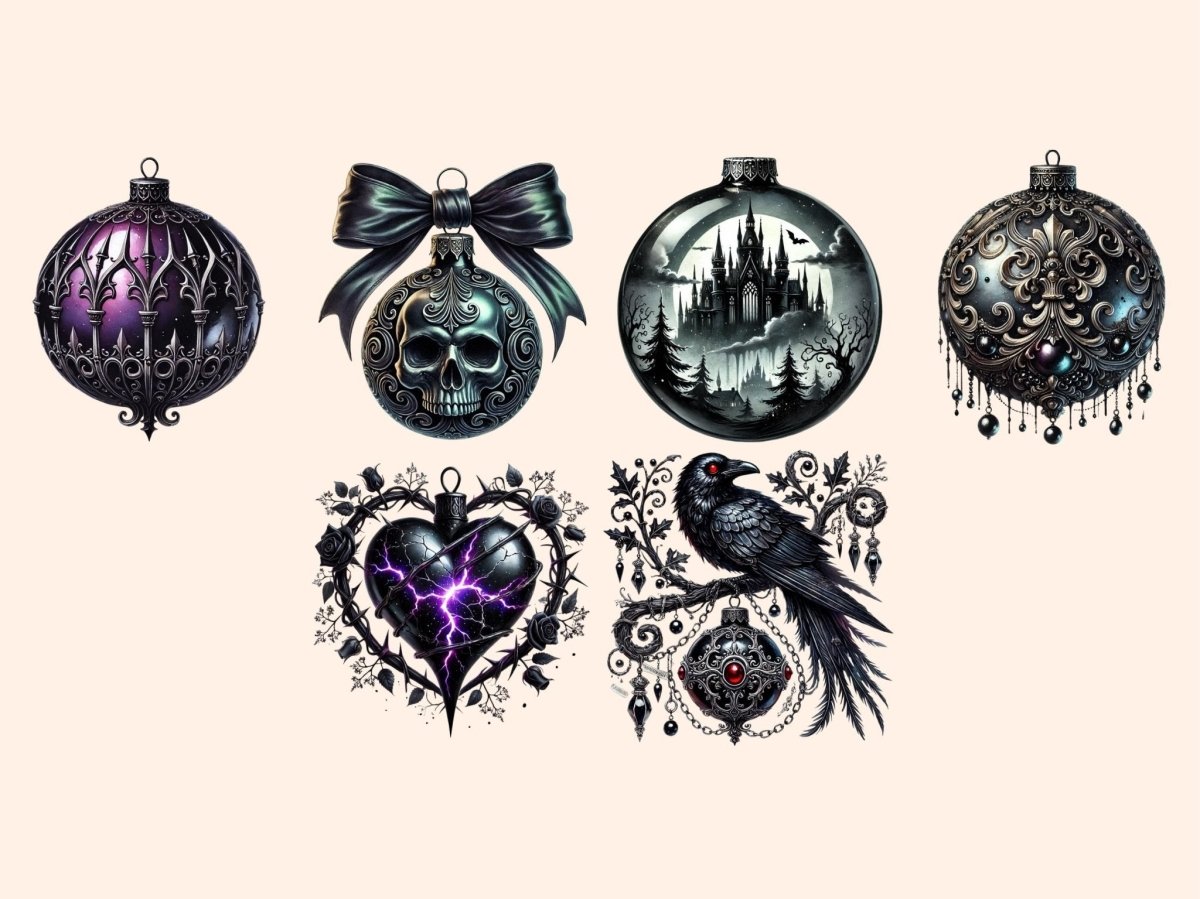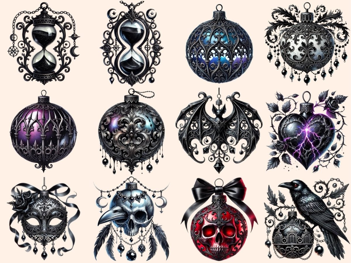 Red & Gold Christmas Ornaments Watercolor Clipart