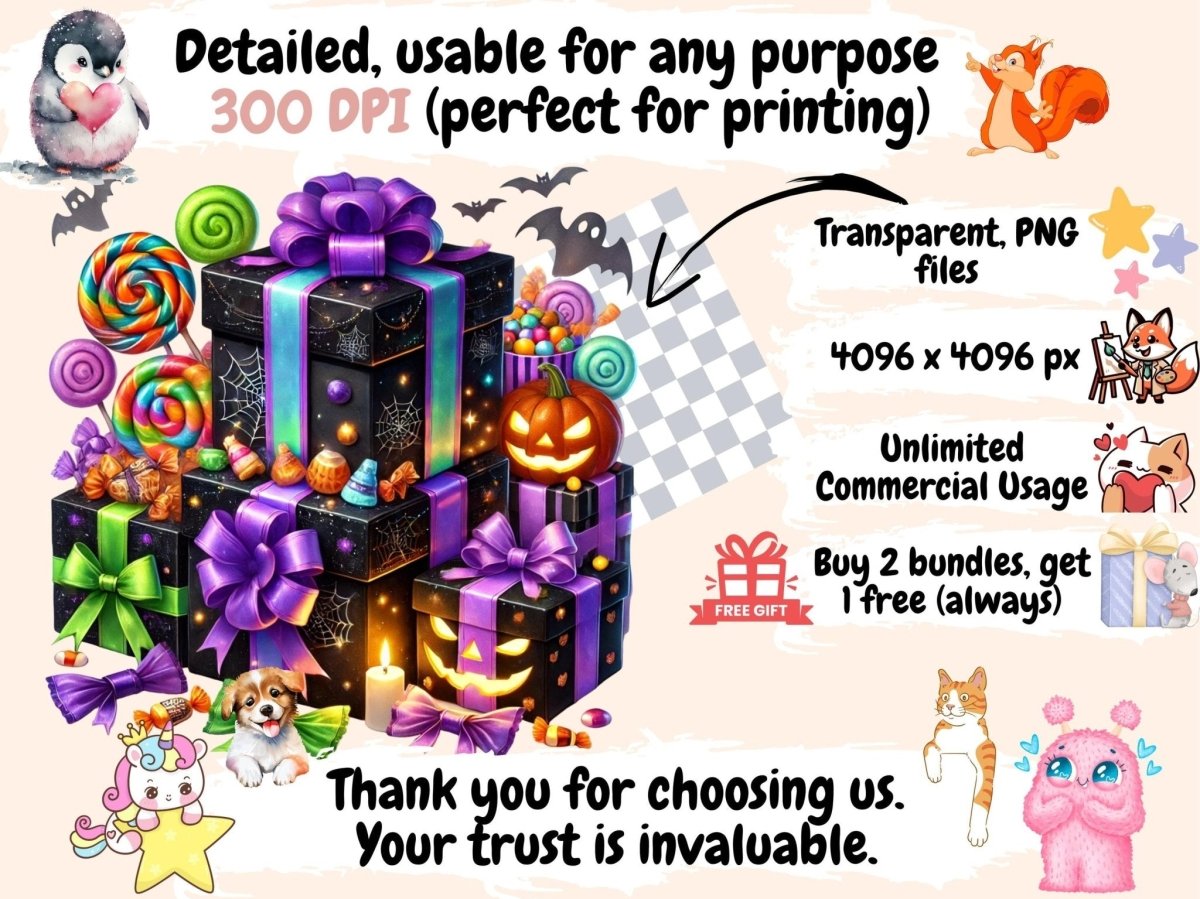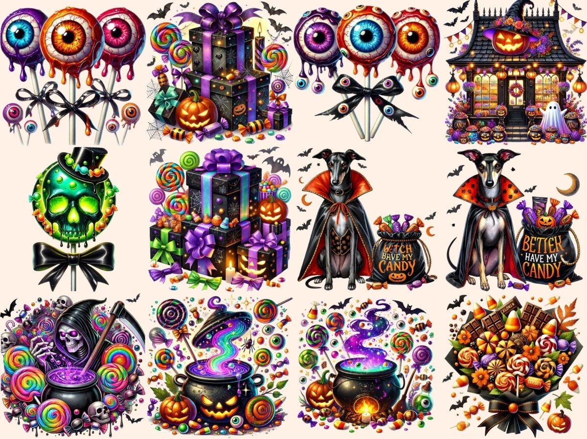 Halloween Candies (P2) Clipart offers creative designers, parents, teachers, and event planners the perfect resource for festive autumn projects. You get transparent PNGs, 300 dpi (4096×4096 px; 13.65×13.65 in / 34.67×34.67 cm), with clean cut edges.