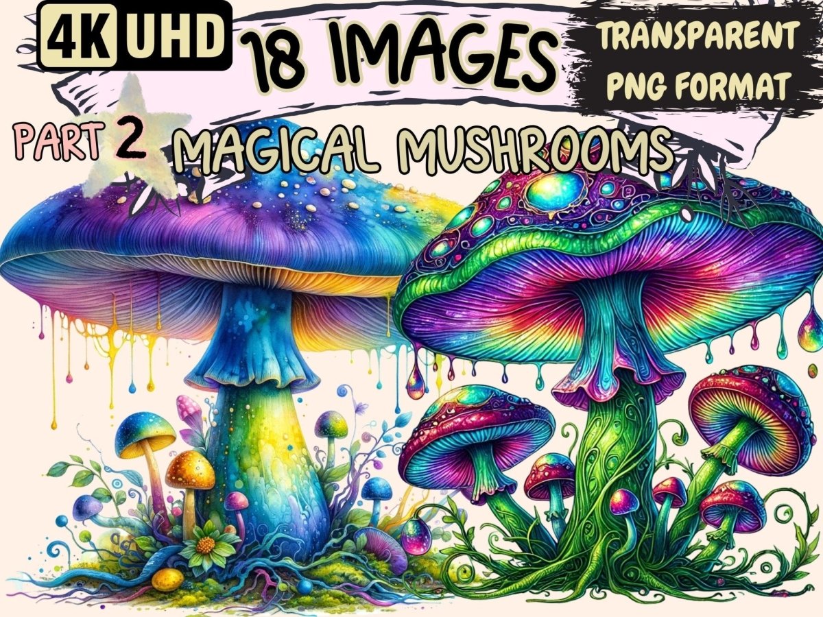 Magical Mushrooms Watercolor Clipart