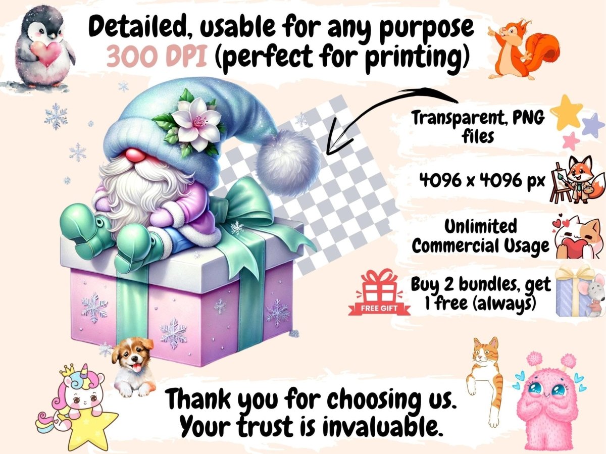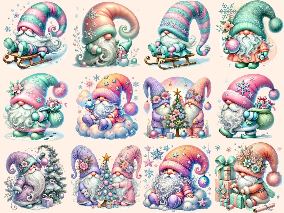 Pastel Christmas Gnomes (P2) Clipart