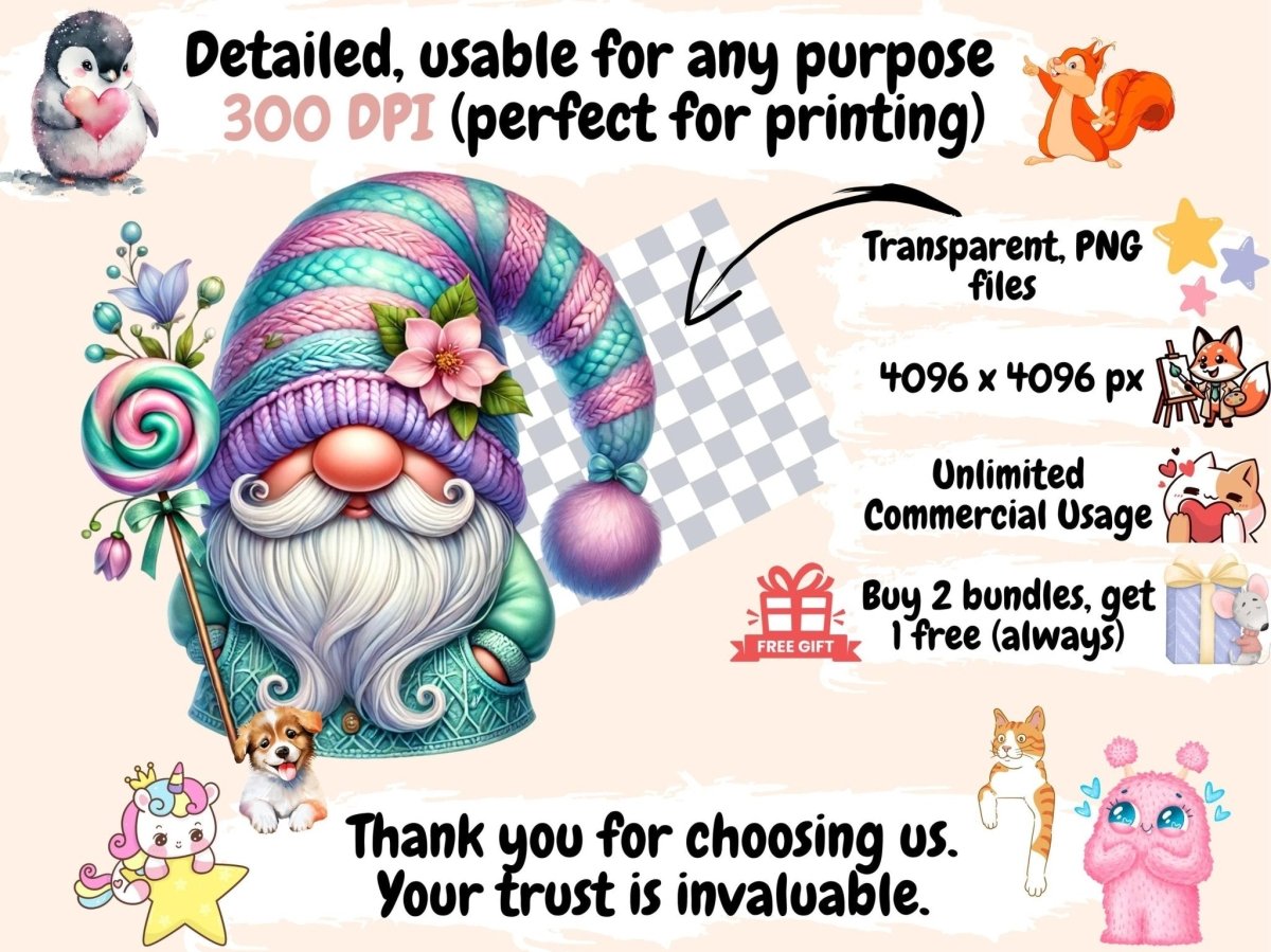Pastel Christmas Gnomes Clipart