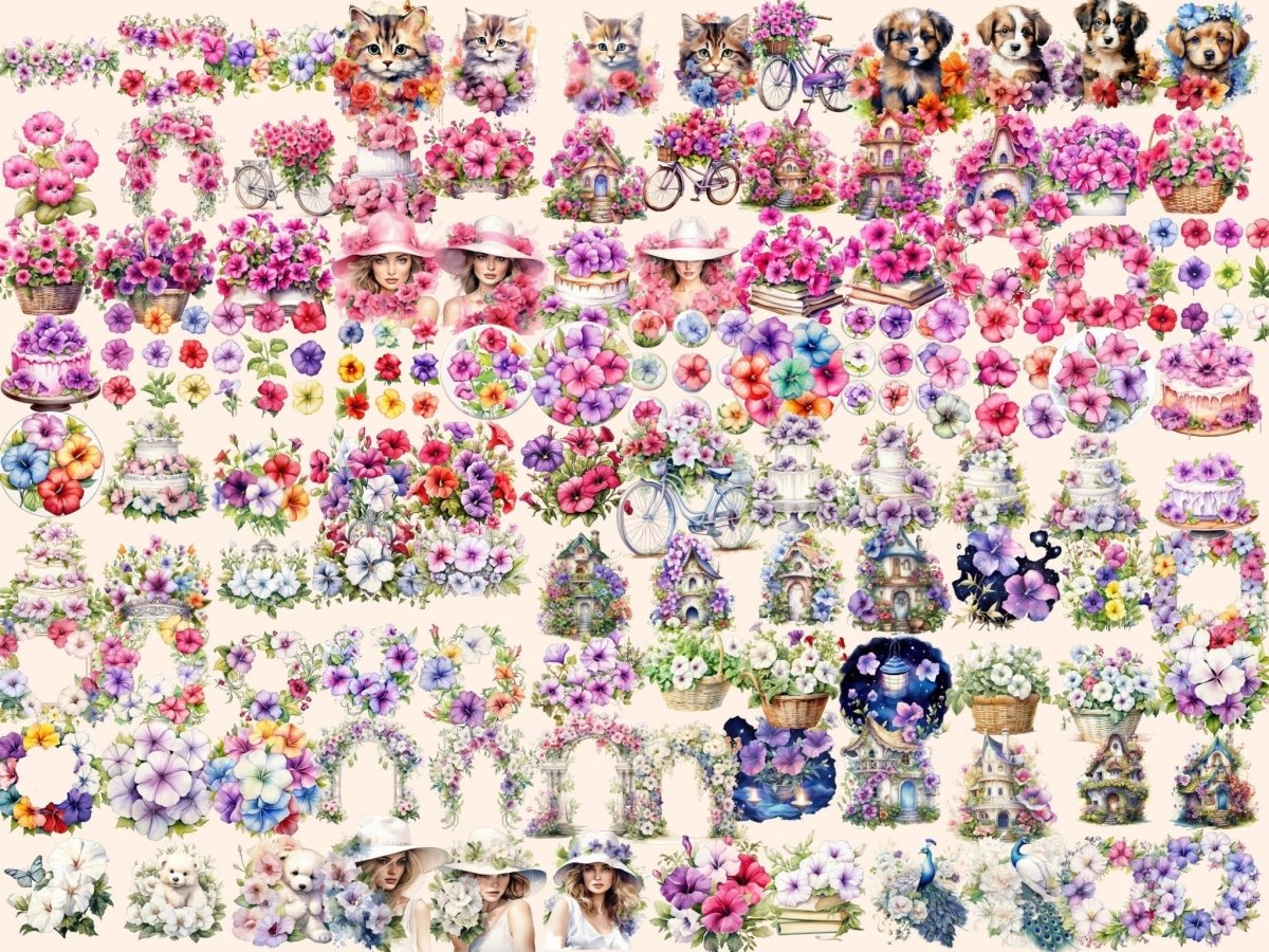 Multicolor Petunia Watercolor Clipart