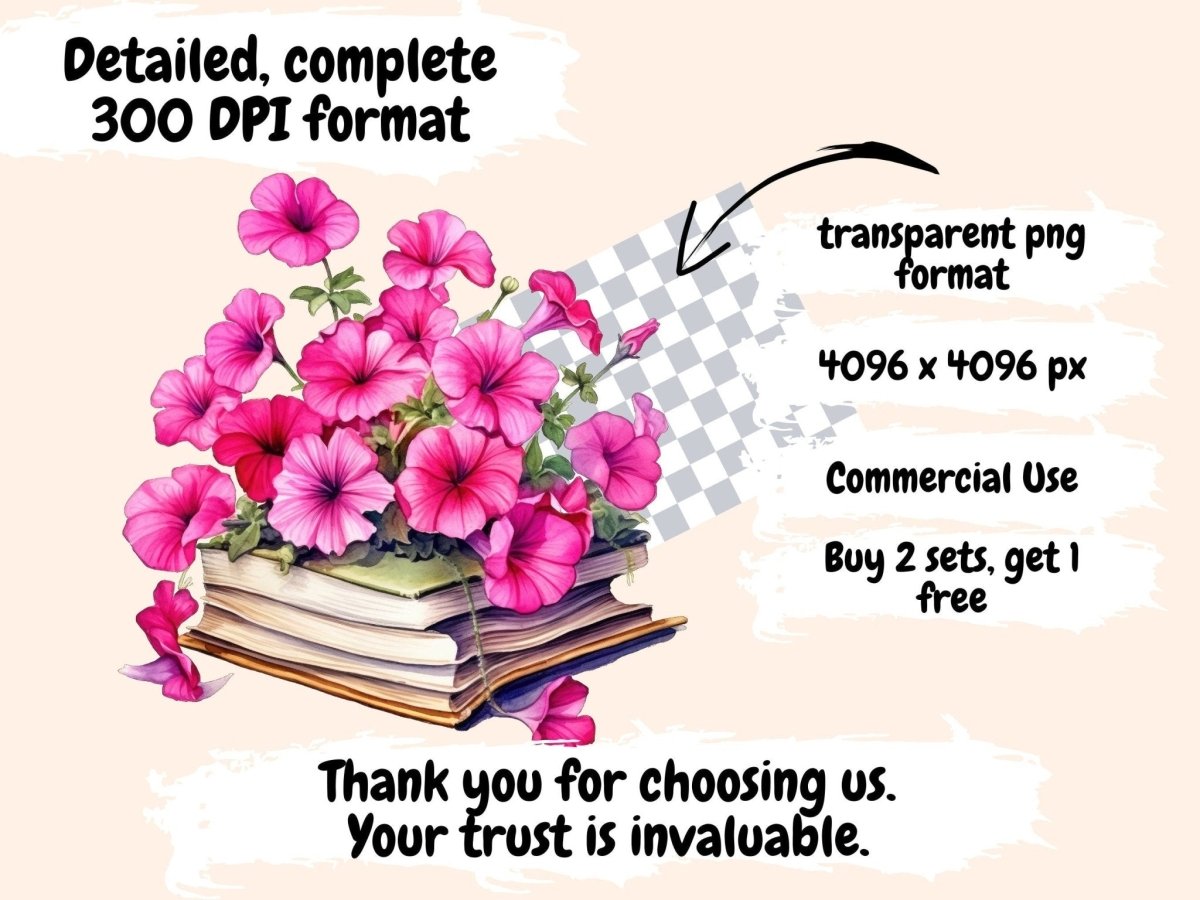 Pink Petunias Watercolor Clipart